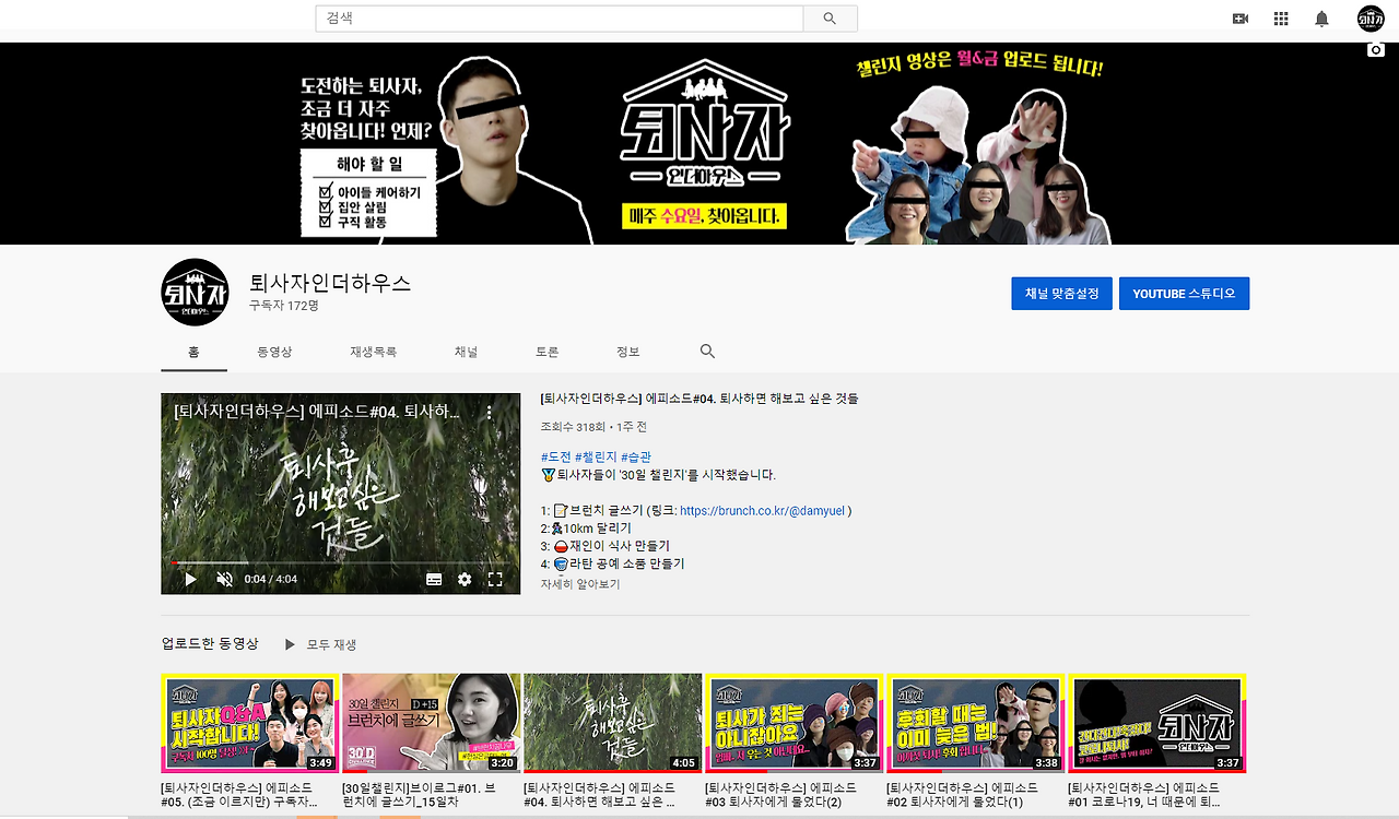 유튜브 <퇴사자인더하우스>에 놀러오세요~