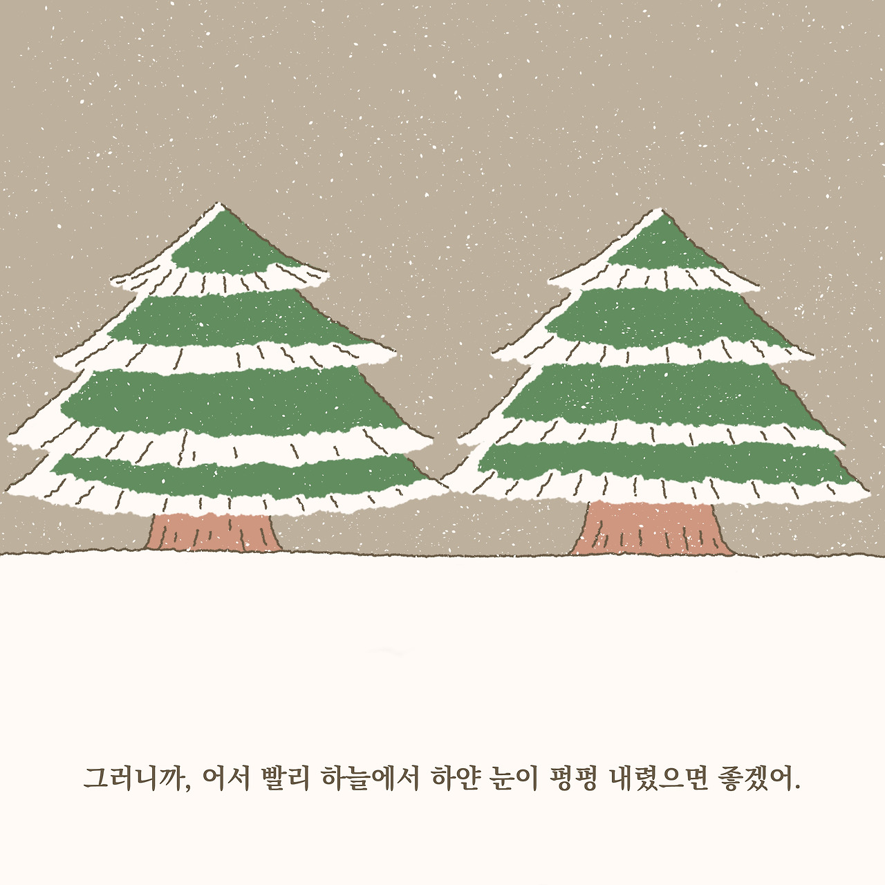 그러니까, 어서 빨리 하늘에서 하얀 눈이 펑펑 내렸으면 좋겠어.