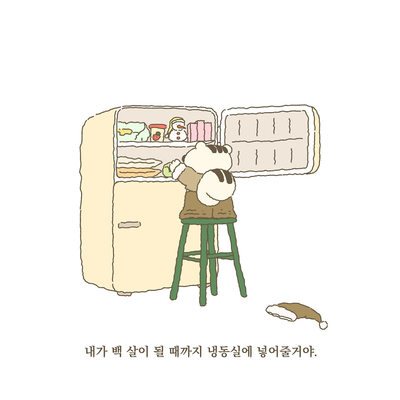 내가 백 살이 될 때까지 냉동실에 넣어줄 거야.