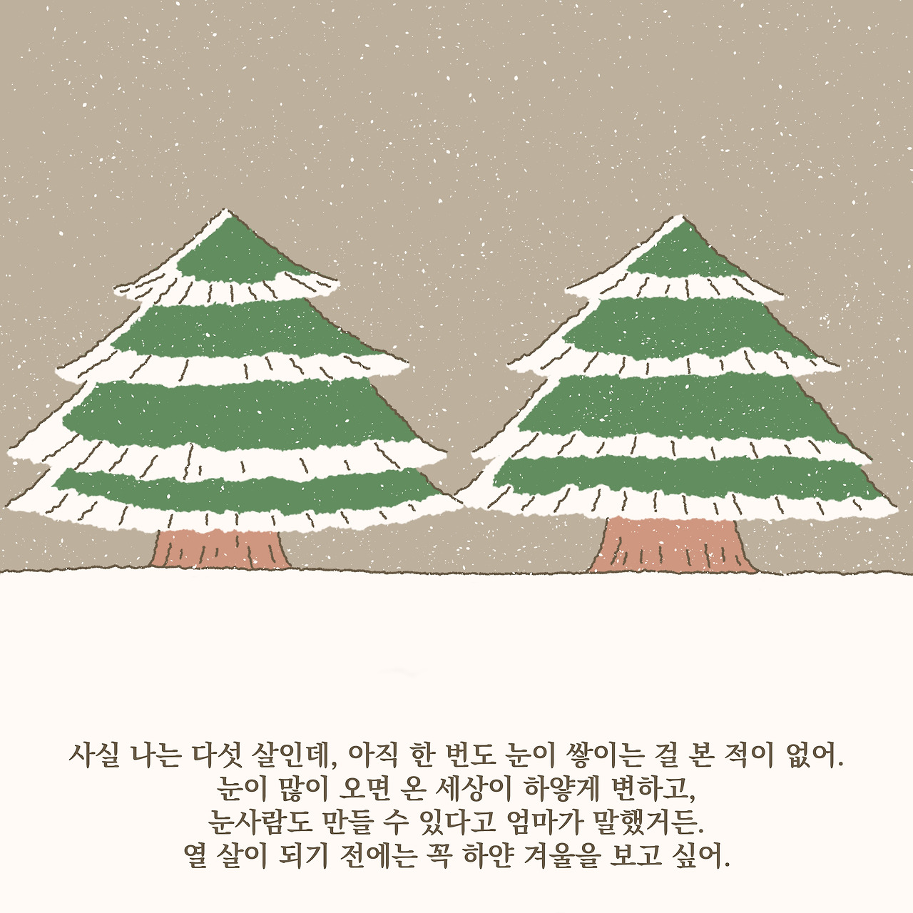 사실 나는 다섯 살인데, 아직 한 번도 눈이 쌓이는 걸 본 적이 없어.