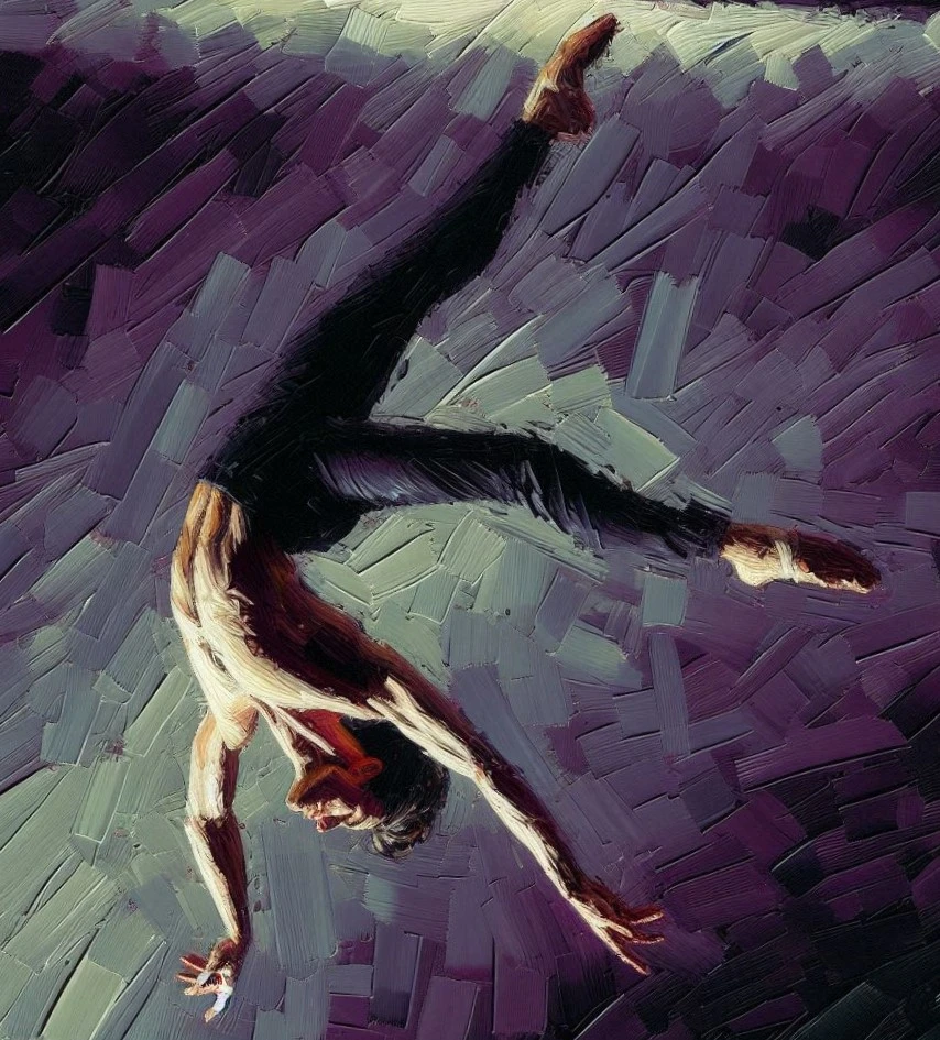 빙글빙글, 갖가지 색깔이 섞여 들어가며 희미한 잿빛 잔상만이 아른거렸다. 남자의 손이 위쪽으로 올라가고, 발이 아래쪽으로 내려오자, 그제야 나는 남자가 무용수임을 알아보았다. 그는 한쪽 팔을 우아하게 허공에 던진 채, 힘차게 도약하는 동시에 빠르게 회전하고 있었다. 그 때문에 그의 허리와 발목이 기묘하게 뒤틀려 보이는 것이었다. 그로테스크함이 아예 사라진 건 아니지만, 똑바로 본 남자의 얼굴은 생각보다 귀족적이었다. 거꾸로 뒤집혀 있을 때보다 훨씬 젊고 힘이 넘쳐 보였다.