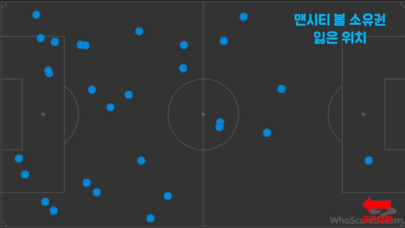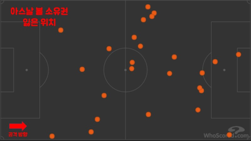 아스날의 후방 빌드업은 맨시티가 보여준 후방 빌드업과 너무도 대조적이었다. 맨시티가 볼 소유권을 잃은 지점이 아스날 진영에 몰려 있는 것과 달리 아스날은 빌드업 위치에 수많은 점들이 찍혀있다. 물론 서두에 언급했듯이 이제 첫걸음을 내딘 팀이기 때문에 이는 차츰 개선될 것이라고 믿어 의심치 않는다. 내년에 있을 두 팀의 2차전에서는 이러한 격차가 눈에 띄게 줄어들어 있길 간절히 바란다.