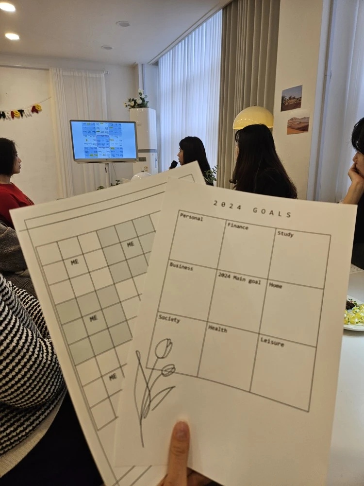 표면적인 주제는 ‘2024년 목표 세우기‘ 였지만 숨어있던 진짜는 엄마이기 이전에 나 자신을 돌아보는 시간, 몰랐던 나를 발견하는 시간이다. 나에게 의미가 있는 것이 무엇인지 알지 못한 채 세우는 목표들은 타인의 것이기에 아무런 힘이 없다. 그래서 사람들은 작심삼일이라고 말을 하는 것이다. 나만의 의미를 발견해 간다면 의지는 저절로 따라오게 되어 있으니까 말이다.