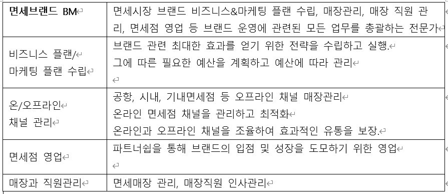 * 따라서 면세마켓에 대한 이해도, 진취적인 마인드가 필수이다.