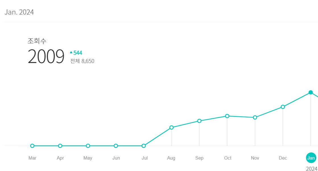 v 총조회수로만 볼 때 1월 조회수는 2,009회로 12월 1,465회에 비해 +37% 성장.