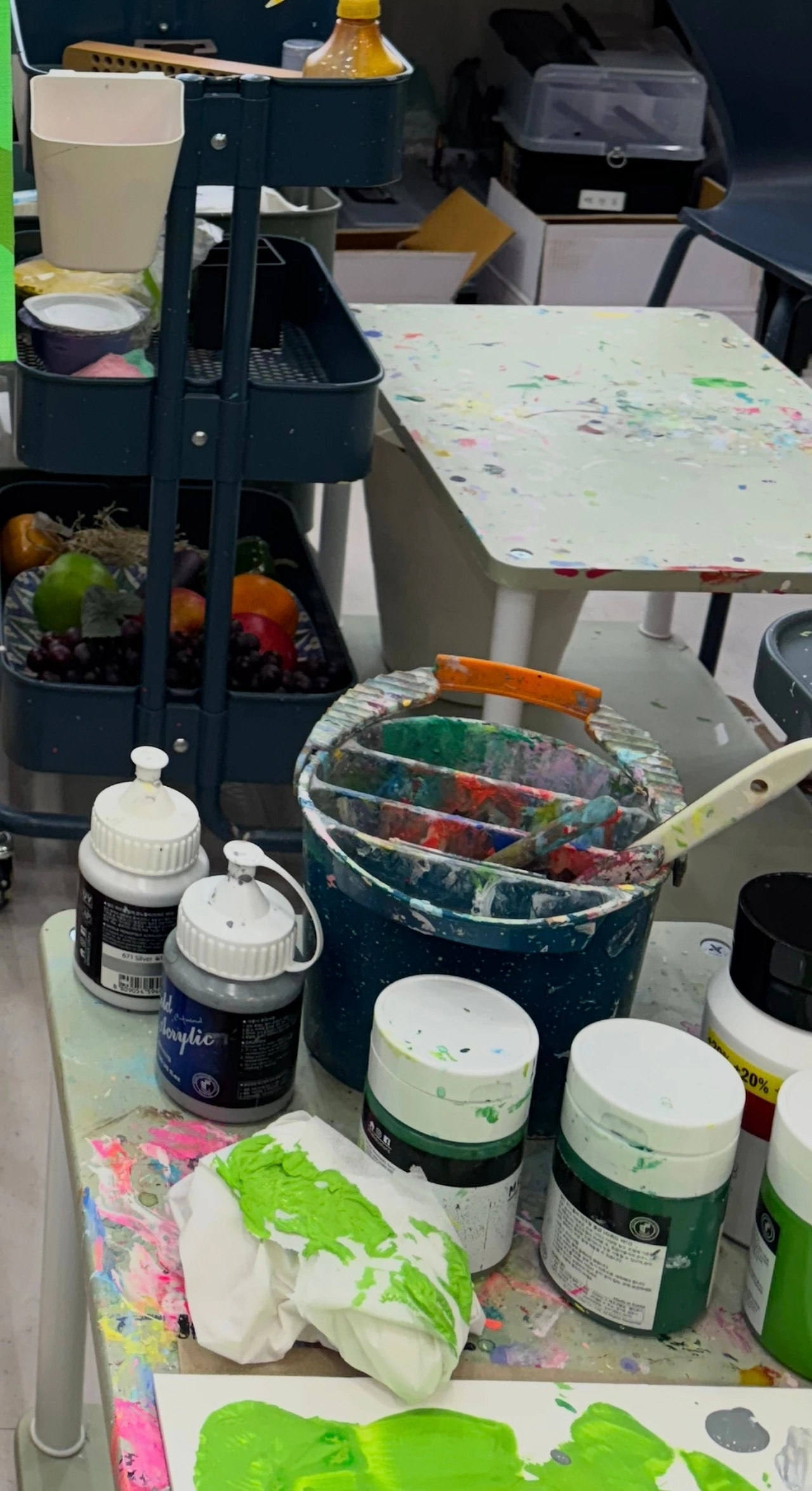 막상 시작해보니 그림은 생각보다 훨씬 노동이었다. 감성적인 취미를 기대했는데, 현실은 거의 현장직에 가까웠다. 물감을 짜고, 붓을 씻고, 물통을 갈고, 드라이어로 물감을 말리고, 다시 붓질을 하고. 어떤 색을 쓸지 계속 고민해야 했고, 어깨와 팔은 금세 저렸다. 내 상체만큼 큰 작품 하나를 완성하는 데 꽤 오랜 시간이 걸렸다. 그런데 신기하게도 그 시간 동안 잡생각이 거의 들지 않았다. 불안이 끼어들 틈이 없었다. 손이 바빴고, 눈이 바빴고, 머리는 색깔과 구도만 생각하고 있었다. 그리고 마침내 완성된 그림을 봤을 때, 이상하게도 눈물이 날 뻔했다. 잘 그려서가 아니라, 끝까지 했다는 사실 때문에. 아, 이래서 사람들이 예술을 하는구나, 싶은 순간이었다.
