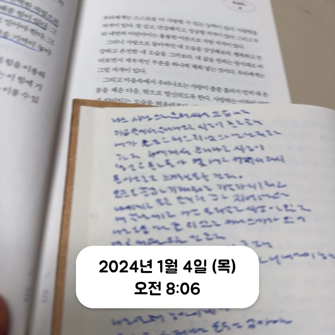 매일 분주한 일상과 당장에 처리해야 될 일로 사로잡혀 살기 쉽다. 나도 모르게 ‘바빠 죽겠다.’란 말이 절로 나온다. 하지만 아침에 쓰는 일기에는 쫓기는 거 없이 나에게 집중할 수 있다. 깨자마자 생각을 쏟아내니 날 것의 내 마음을 들여다볼 수 있게 된다. 이럴 때 나는 크게