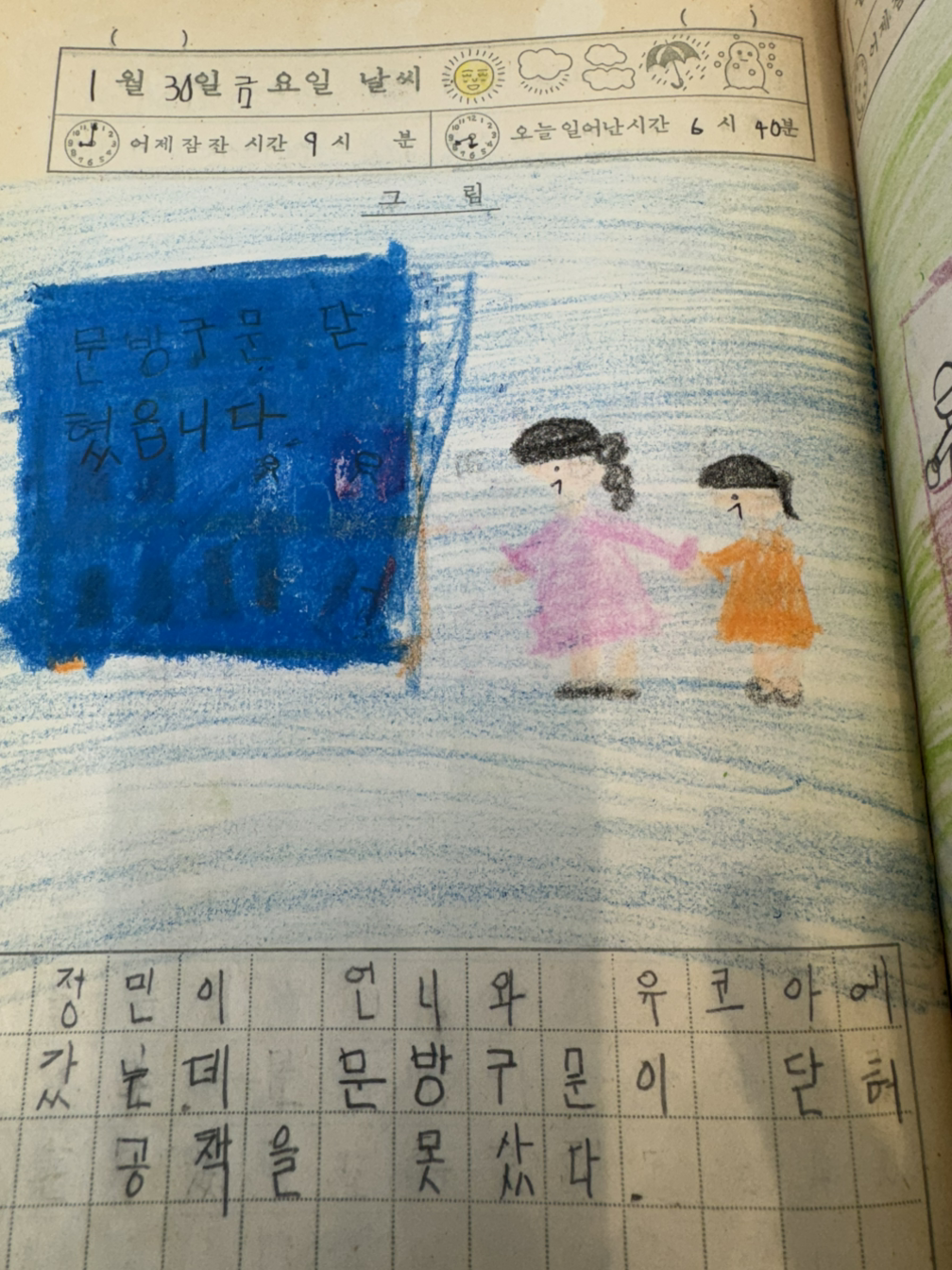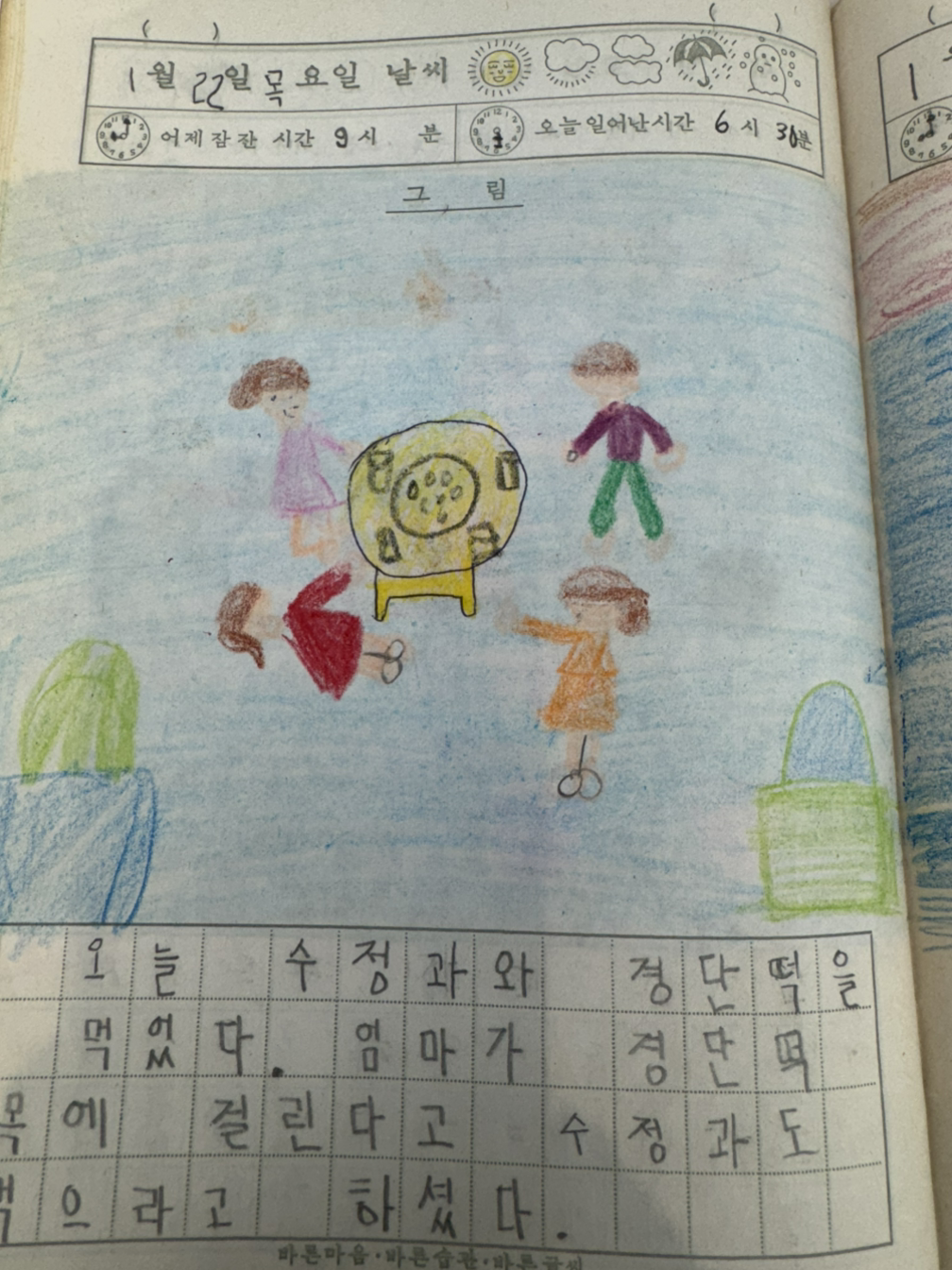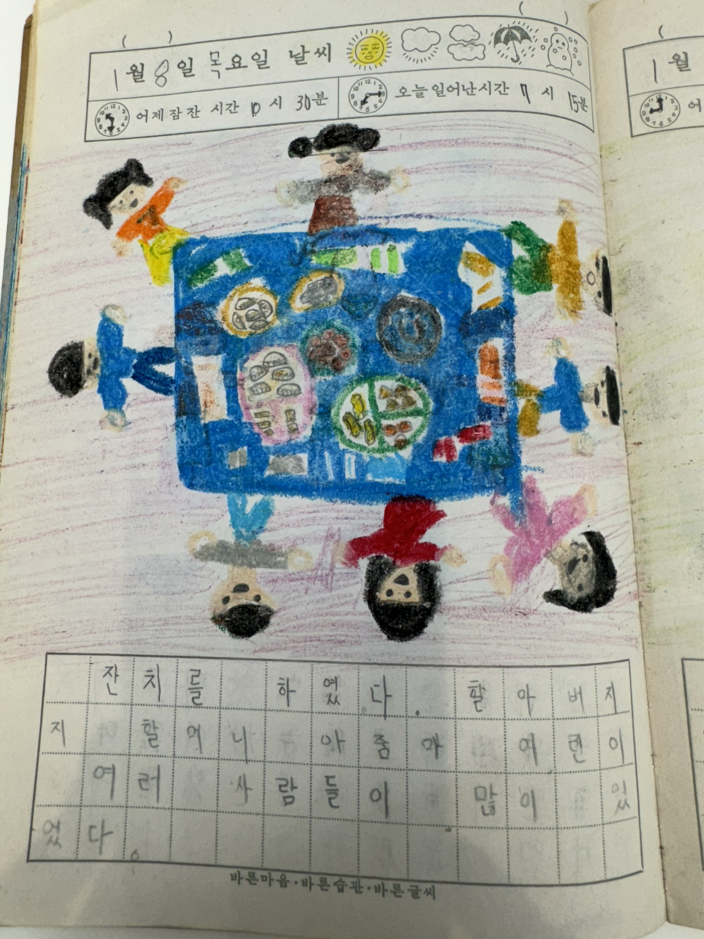내 그림일기 그림 중 가장 다채롭게 표현된 일기이다. 친가 친척들이 잔뜩 모인 날이 아니었을까 싶다.