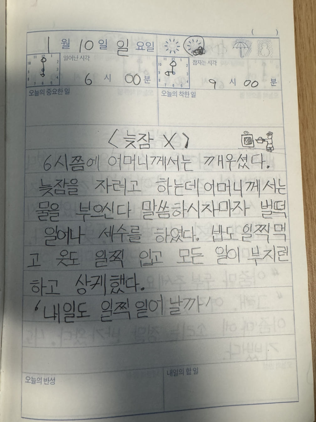 국민학교를 1~2년 더 다녔을 뿐인데 일기길이도 많이 늘고 맞춤법도 꽤나 훌륭해진 게 신기하다.