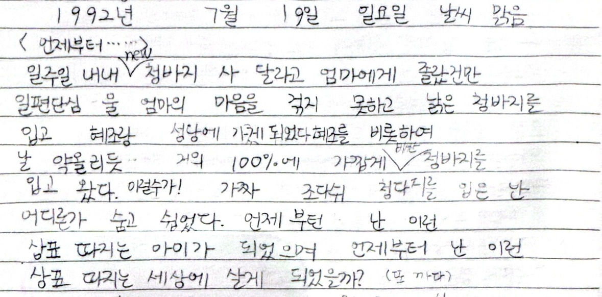 게스청바지를 입지 못하고 2만 원짜리 공연을 못 가서 아쉬워한 때였구나. 알뜰한 부모님 덕에 뭐든 어렵게 손안에 넣을 수 있었던 때였지. 그때가 문득 까마득하게 느껴진다.