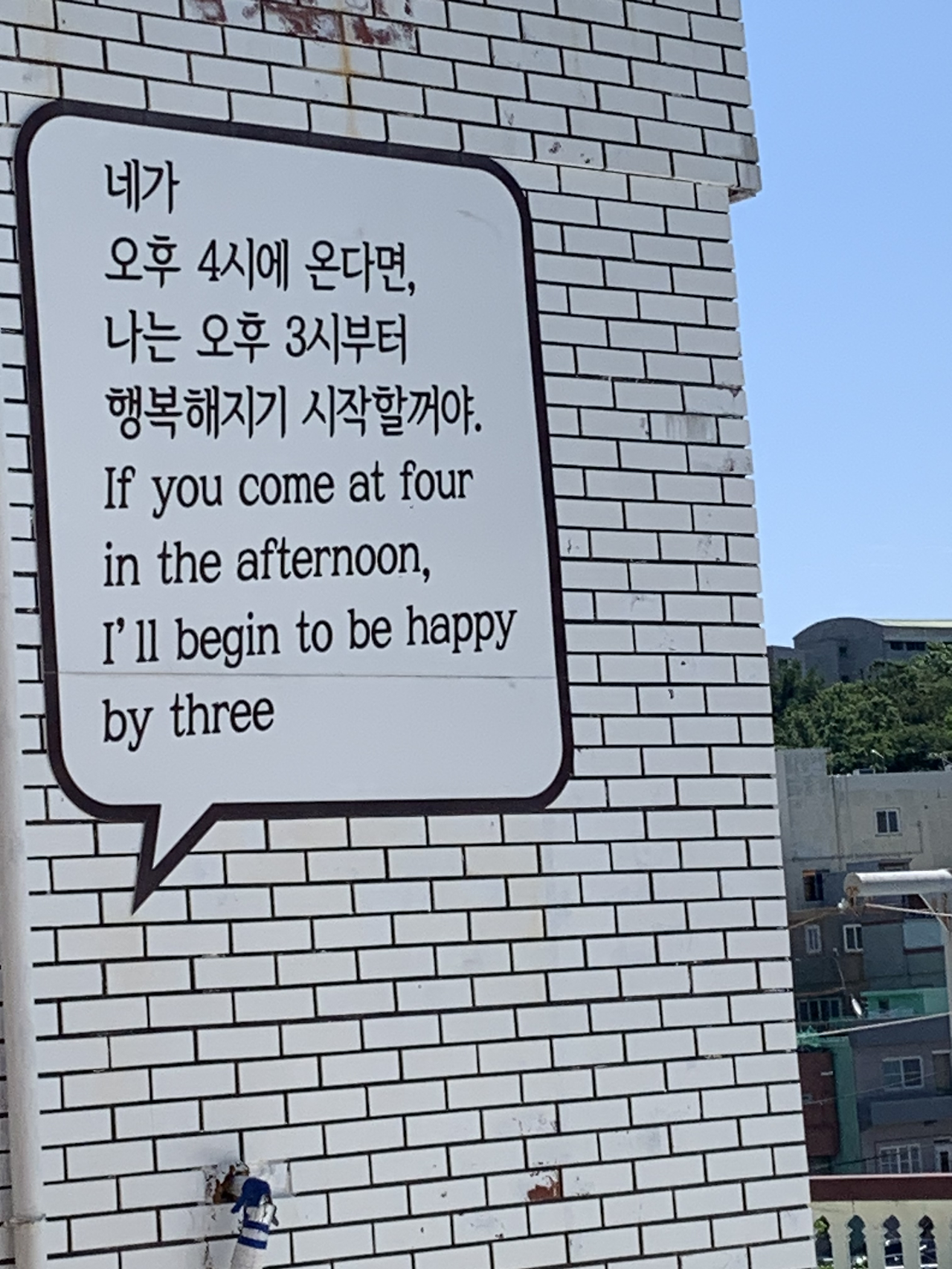 수업시간 한결같이 눈을 감고 있는 학생이 루지 헬멧착용법을 나에게 친절히 알려준다던지 “헬맷에 끈이 손가락 두 개 들어갈 정도 길이로 해야 된다고 했거든요. 샘 꺼 좀 줄여야 될 거 같아요.” 껄렁한 몇 놈이 놀이기구 앞 떨고 있는 나를 보고는 “샘 괜찮아요? 안 괜찮으신 거 같은데”라고 말해준다던지. 식당에서 식사를 마치고 “잘 먹었어?” 묻는 말에 “샘도 맛있게 드셨어요?” 되물어준다던지. 그런 소소한 모습에 행복했다.