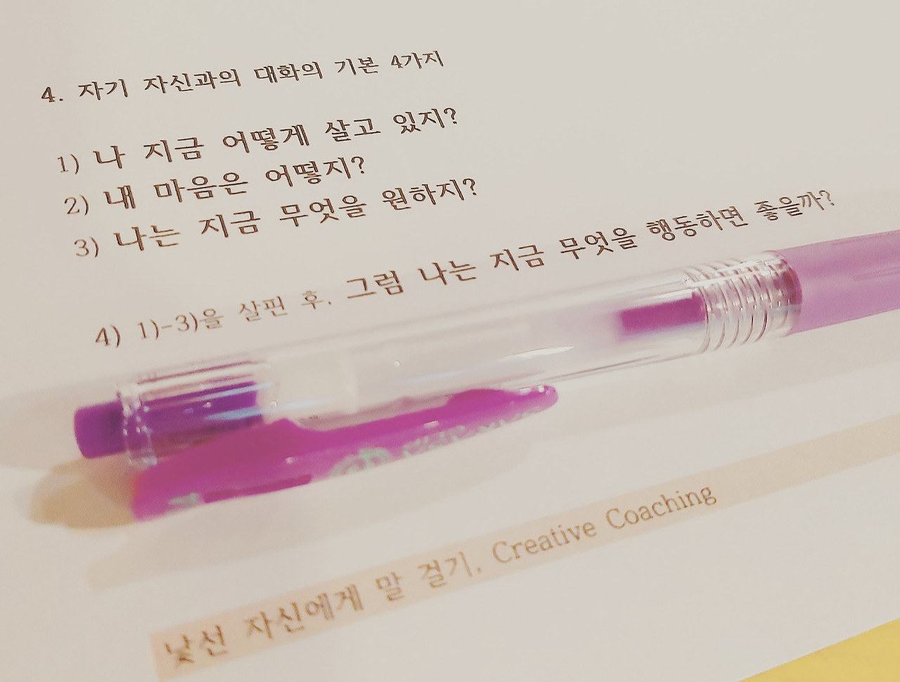 퇴사 전부터 홍대 상상마당의 몇몇 프로그램에 관심이 갔다. 그중 이름부터가 마음을 당겼던 ‘크리에이티브 코칭(Creative Coaching)’. 퇴사 후 반년이 지나 여유가 몸에 익을 무렵, 낯설지만 설레는 마음으로 그 수업을 찾았다. 매주 토요일 아침 여덟 번의 만남이 끝난 후, 나는 조금은 다른 사람이 되어 있었다. 이후로도 또 2년. 셀프 코칭에 더 다가가기 위해 노력 중이고 과거에 비해 단단한 사람이 된 내가 좋다.