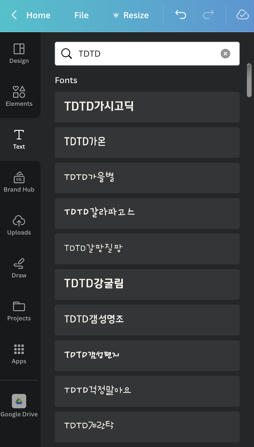 일단 워크북을 만드는 이번 프로젝트의 경우, 학습을 도울 많은 아이콘이 많이 필요했다. 캔바에는 무료 아이콘들이 잔뜩 제공되기에 워크북 디자인 작업이 수월했는데 (예쁜 한글 폰트도 제법 많이 있다! 하단 사진에 보이듯이 TDTD 키워드를 넣어서 검색) 다만, 이전 글에서도 언급했지만 예전에는 무료로 사용할 수 있는 아이콘 검색이 되었던 반면 이제는 무료 아이콘 추출 기능이 없기 때문에 필요한 아이콘을 찾기 위해서 들이는 시간이 예상보다 많이 들어갔다. 조금 귀찮은 부분이었지만 무료 아이콘들이 충분히 있었기에 첫 번째 책 제작 시에는 캔바 무료 이모티콘들만으로 콘텐츠 구성이 가능했다.