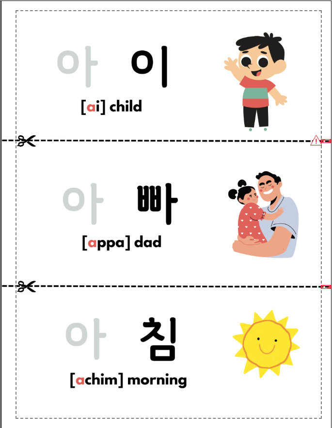지난번 캔바 사용 후기에서 워크북을 만들 때에 정열/배치가 중요하다는 이야기와 함께 눈금선을 활용을 추천했었다. 블리드/ 노블리드 세팅이 정해진 뒤, 종이 자름선/안전지대 등을 미리 표시해 두고 작업을 하면 나 같은 삽질을 하지 않아도 될 터이니 독립출판을 준비하는 아마존 전사들이라면 이를 마음에 새겨두길 바란다.