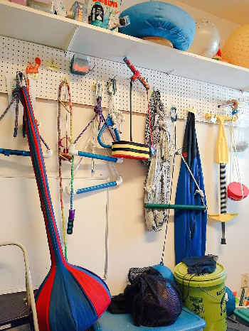 센서리 다이어트를 도와줄 기구들이 나열되어있는 센터 벽면