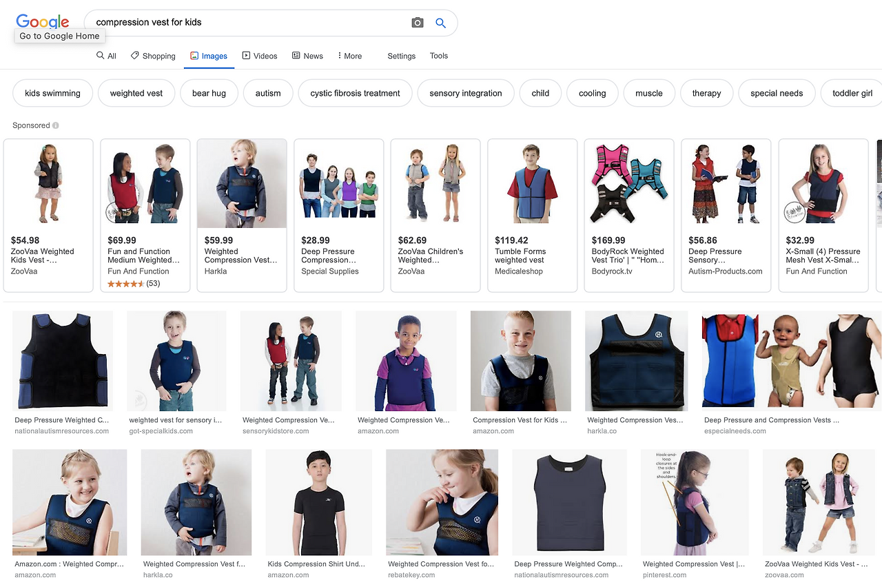 구글 검색창에 Compression Vest for Kids로 검색했을 때