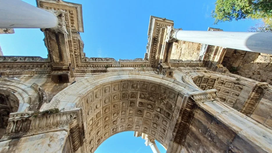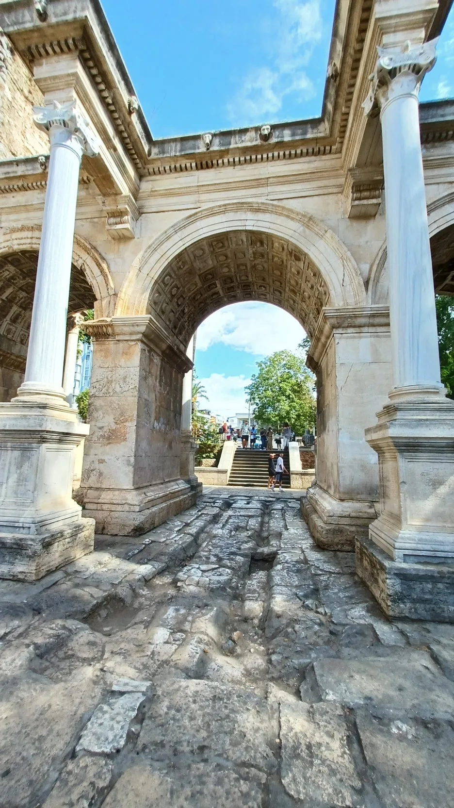 숙소에서 트램 역으로 가려면 '하드리아누스의 문'을 지나야 한다. 안탈리아의 상징이자, 로마 황제의 이름이 새겨진 아치. 색이 바랜 대리석 기둥은 1900년의 시간을 버티며 여전히 굳건하게 서있다. 세 개의 아치형 통로는 마치 시간의 문처럼, 한쪽은 현대의 거리로, 다른 쪽은 고대의 세계로 열려 있다. 기둥 아래로는 수레바퀴가 새긴 깊은 홈이 남아 있다. 얼마나 많은 마차가, 얼마나 오랜 세월 이 길을 오갔으면 대리석이 이토록 파였을까. 그 자국 하나하나에 시간이 새겨져 있다.