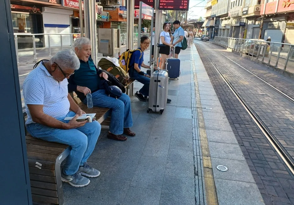 오후부터 하늘이 서서히 흐려졌다. 구름은 낮게 깔리고, 바람에는 바다의 비린내가 살짝 섞여 있다. 저녁부터 비 소식이 있지만, 우리는 산책을 겸해 구도심을 둘러보기로 한다. 숙소 아래쪽으로 내려가자 곧 코낙(Konak)역 주변의 번잡한 도로가 펼쳐진다. 차들이 부드럽게 곡선을 그리며 달리고, 그 사이로 버스들이 쉼 없이 드나든다. 버스 정류장과 메트로 입구에는 퇴근길 직장인으로 보이는 사람들이 줄지어 움직이고 있다. 도시의 하루가 천천히 저물고 있다.