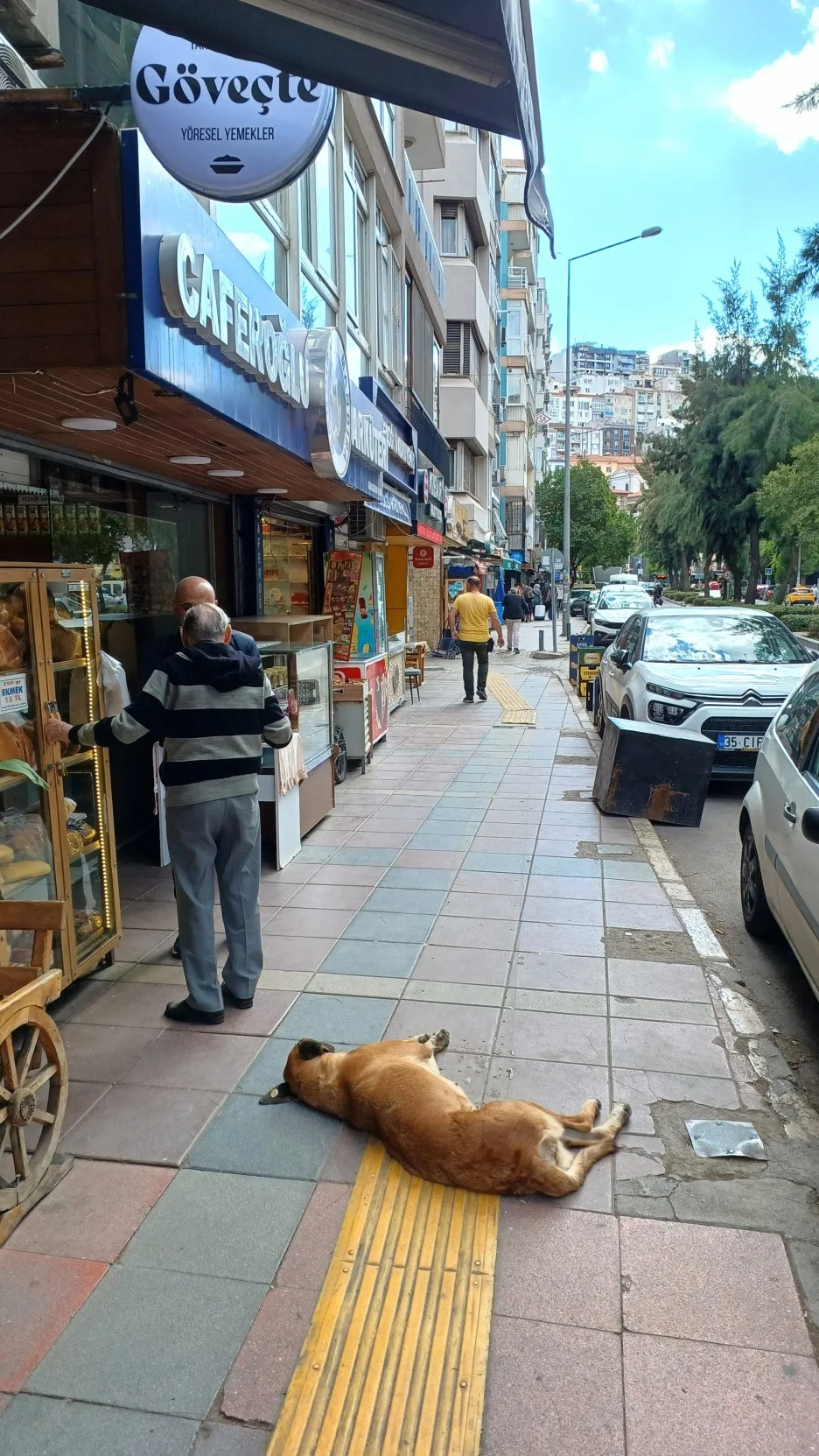 그 앞 보도에는 커다란 개 한 마리가 늘어진 채 낮잠을 자고 있다. 저 정도는 되어야 '개 팔자가 상팔자' 소리를 듣겠다 싶다. 아무도 그 개를 쫓지 않는다. 이즈미르 뿐 아니라 튀르키예의 거리에는 사람과 동물이 자연스럽게 어울려 산다. 이곳은 관광지가 아니라, 도시의 일상이 매일 이어지는 곳이었다.