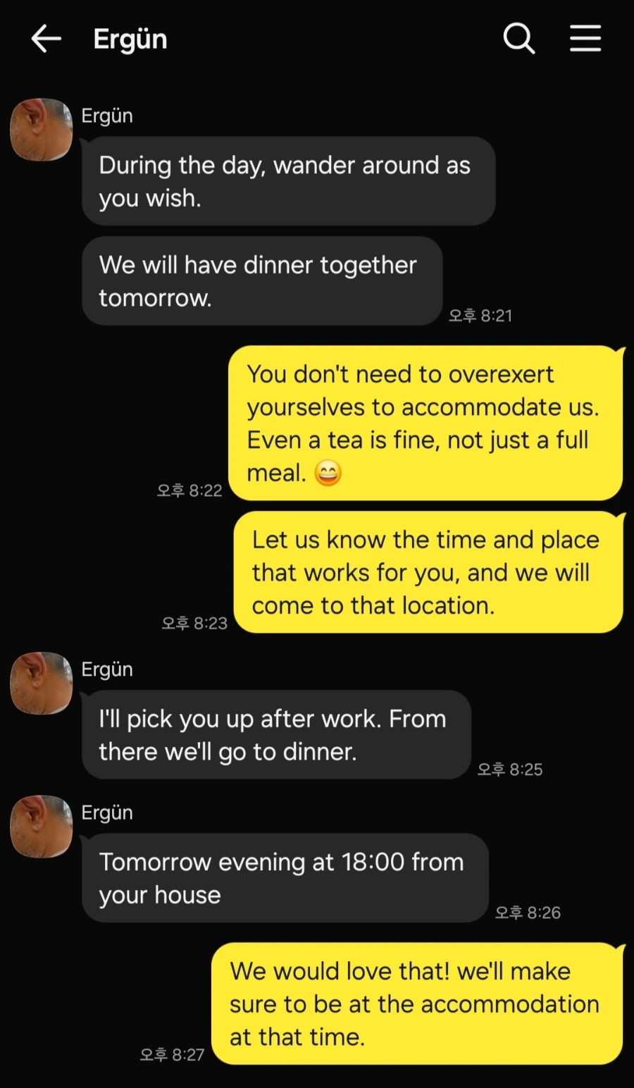 J는 낯선 만남에 늘 조심스러운 편이라 잠시 망설였지만, 나는 설렘이 앞선다. 언어는 다르지만 한국에 호의를 가진 이즈미르 현지인을 직접 만난다는 생각이 마음을 들뜨게 한다. 그들이 들려줄 도시의 삶과 일상의 이야기들은 어떤 가이드북에서도 찾을 수 없을 것이다. 여행의 진짜 즐거움과 오래 남는 기억은 장소보다 사람에게서 온다는 사실을 잘 알기에.