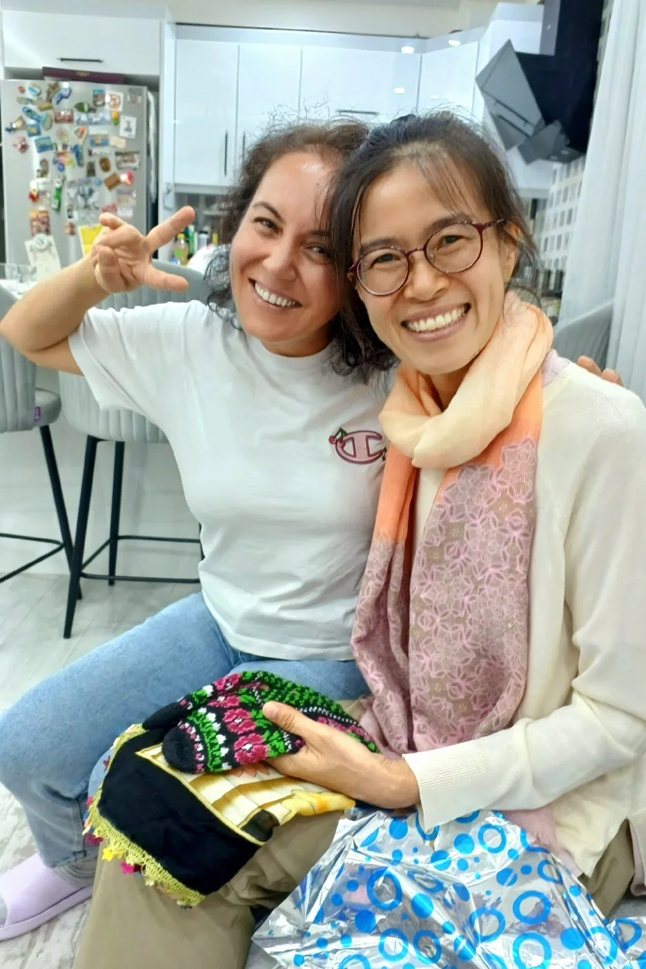 현관문이 열리자, 세브기가 환하게 웃으며 "안녕하세요!" 하고 맞는다. 타국의 가정집에서 들은 한국말 인사는 예상치 못한 감동이었다. 아들 찬도 수줍게 인사한다. 맑은 눈빛이 하이틴 영화 주인공 같다. 거실에는 이미 따뜻한 공기가 감돌고 있었다. 식사 전, 세브기는 손수 준비한 선물이라며 스카프, 손뜨개 받침, 각종 견과류와 로쿰, 그리고 푸른 유리로 만든 '나자르 본주(Nazar Boncuğu, 행운을 가져다주고 나쁜 기운으로부터 보호해 준다고 믿는 터키 부적)' 내민다. 많이도 준비했다. 우리는 한국에서 가져간 라면과 화장품을 건넨다. 그녀는 한국 화장품 브랜드 이름을 알아보고 반가운 표정을 지었다.