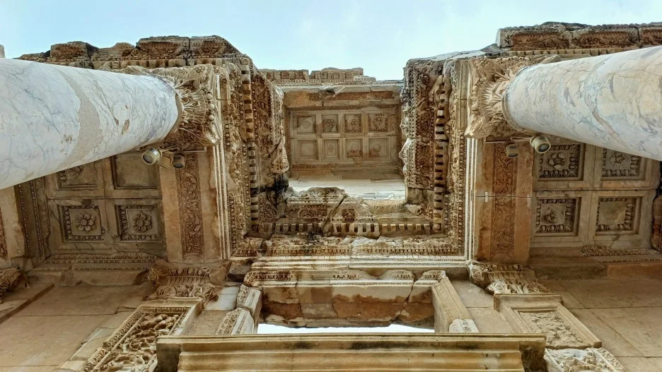 도서관의 안쪽은 텅 비어 있다. 용두사미의 내부는 약간 허무했다. 도서관의 외벽은 속지를 잃어버린 거대한 책 표지처럼 보였다. 한때 수많은 두루마리와 사상의 언어가 이 안을 채웠을 것이고, 그 목소리들은 지금도 대리석 틈새 어딘가에 남아 있을 것만 같다. 책이 불타고, 제국이 무너져도 인간은 여전히 ‘무언가를 기록하고 남기려는 존재’라는 사실. 그 오래된 진심이 이곳에서 빛나고 있다.