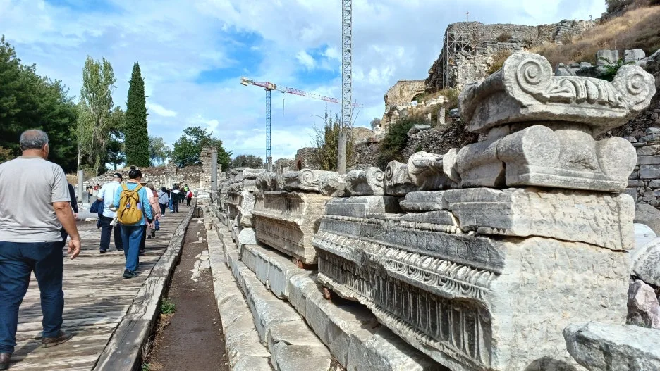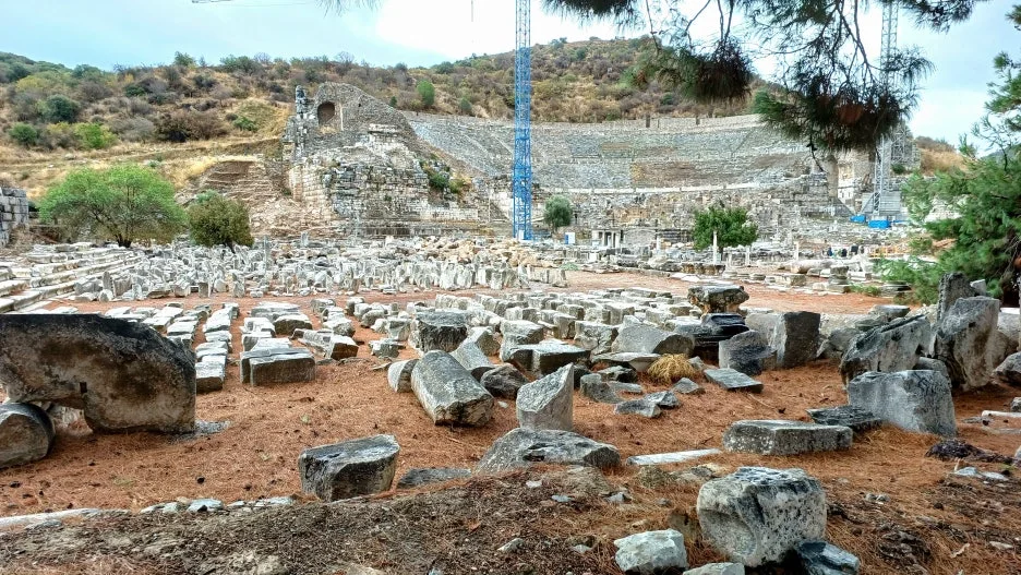 조금 걸어 들어가자, 아르카디안 거리의 끝에서 거대한 원형극장이 모습을 드러낸다. 2만 5천 명을 수용했던 이 극장은 로마 제국 시대 소아시아에서 가장 큰 규모였다. 기원전 3세기에 처음 세워졌고, 로마 황제 클라우디우스 시대에 대리석으로 다시 태어났다. 이곳에서는 음악과 연극이 울렸고, 때로는 정치와 종교가 격돌했다. 바울이 이곳에서 우상 숭배 반대 설교를 하다 분노한 시민들에게 쫓겼다는 기록도 있다. 나는 그 자리에 서서 귀를 기울인다. 무대는 텅 비어 있지만, 계단형 객석 위로는 여전히 사람들의 웅성거림이 들리는 듯하다.