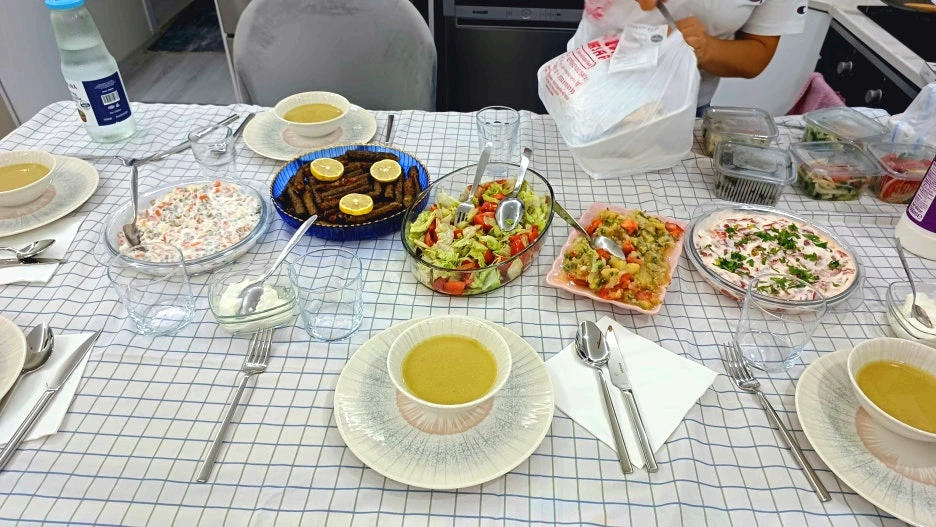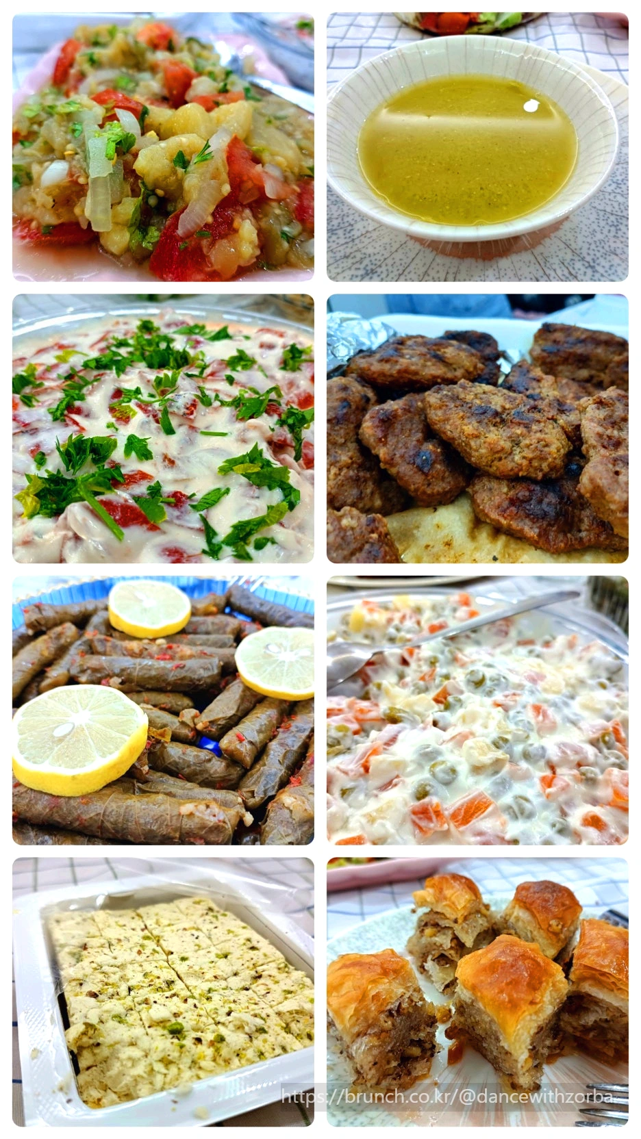 음식을 추가로 내오고 식탁은 금세 가득 찬다. 메르지멕 초르바스(렌틸콩 수프)는 지중해의 바람처럼 부드럽고 따뜻하다. 콩 요리를 좋아하는 J가 반색한다. 야프락 사르마(포도잎 쌈)은 새콤한 레몬 향을 품고 있다. 색색의 채소가 어우러진 러시아식 샐러드와 요거트 샐러드는 식탁에 화려함을 더한다. 식탁 옆에는 잔마다 아이란(ayran)이 담겨 있다. 짭조름한 고기요리에 제격이다. 세브기는 한국말로 "김치가 있으면 좋을 텐데" 라며 웃는다. 그 말에 J와 나도 따라 웃는다. 언어는 달라도, 마음은 이렇게 닿는다.