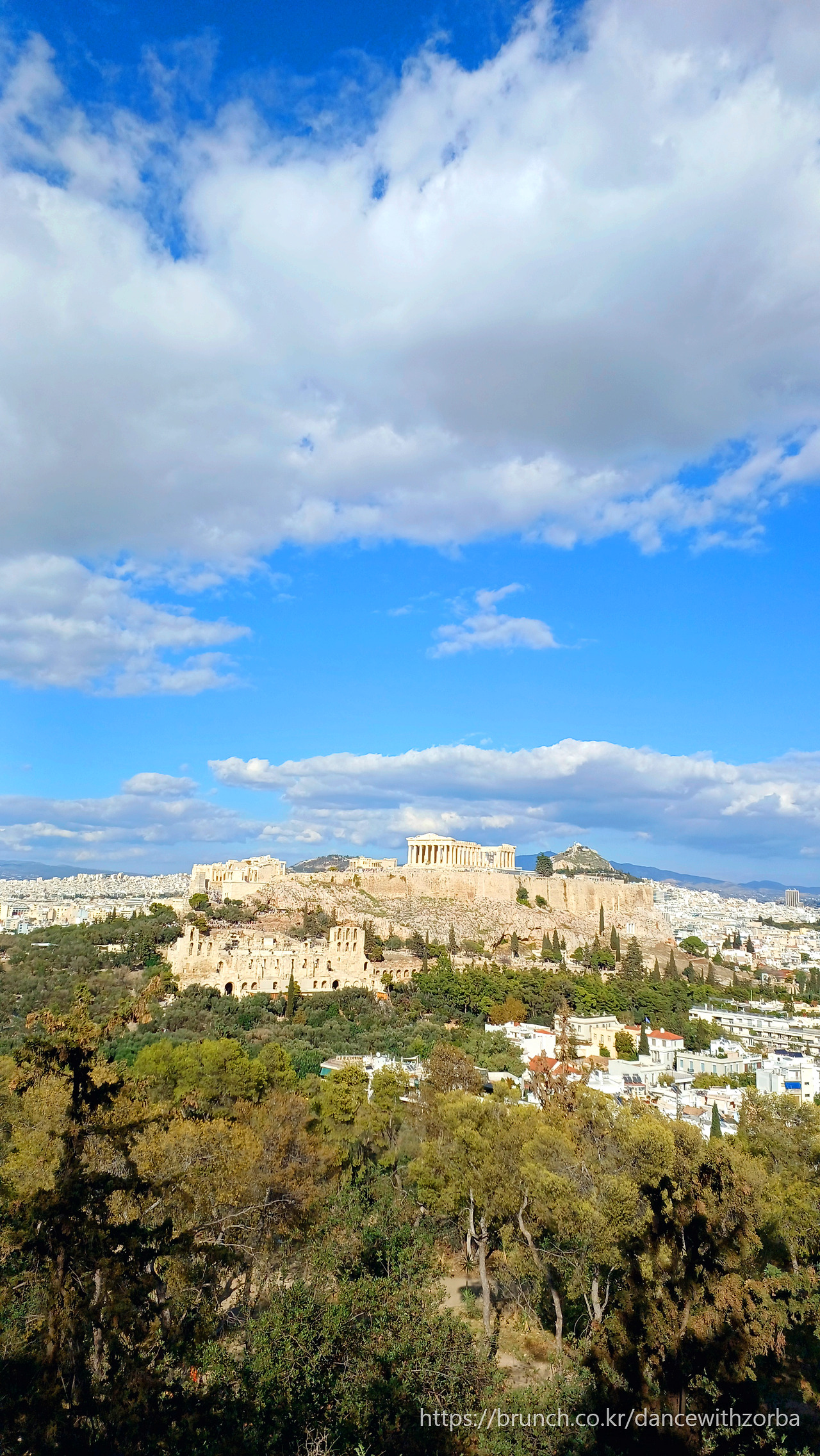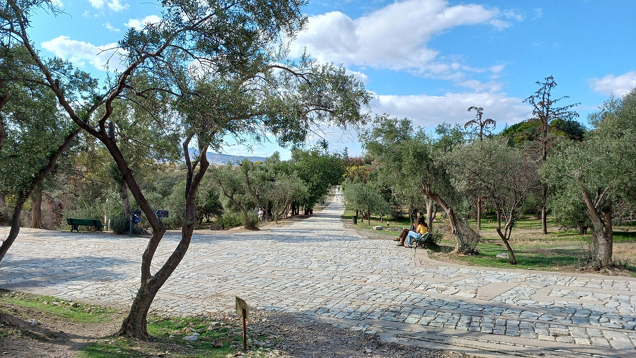 오전을 여유있게 보내고 난 뒤, 우리는 필로파포스 언덕을 향해 천천히 걸어갔다. 일요일의 거리는 조용했고, 햇빛을 받은 오렌지 가로수가 가볍게 살랑거린다.