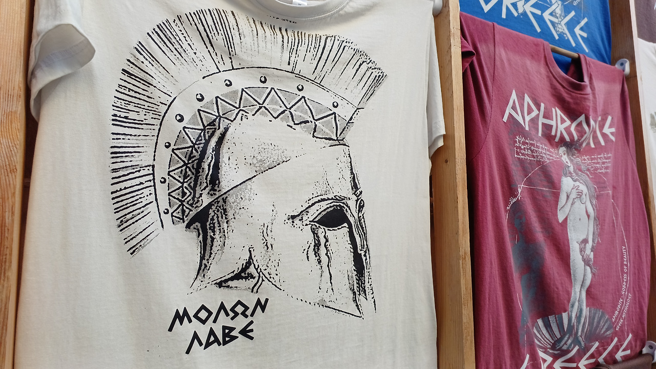 걸어온 길을 되밟아 숙소로 향한다. 길가 옷가게 앞, 스파르타(Sparta) 글자와 투구가 그려진 티셔츠가 눈에 띈다. 영화 <300> 이후 '스파르타'는 ‘불굴의 전사’라는 이미지의 대명사가 되었다.