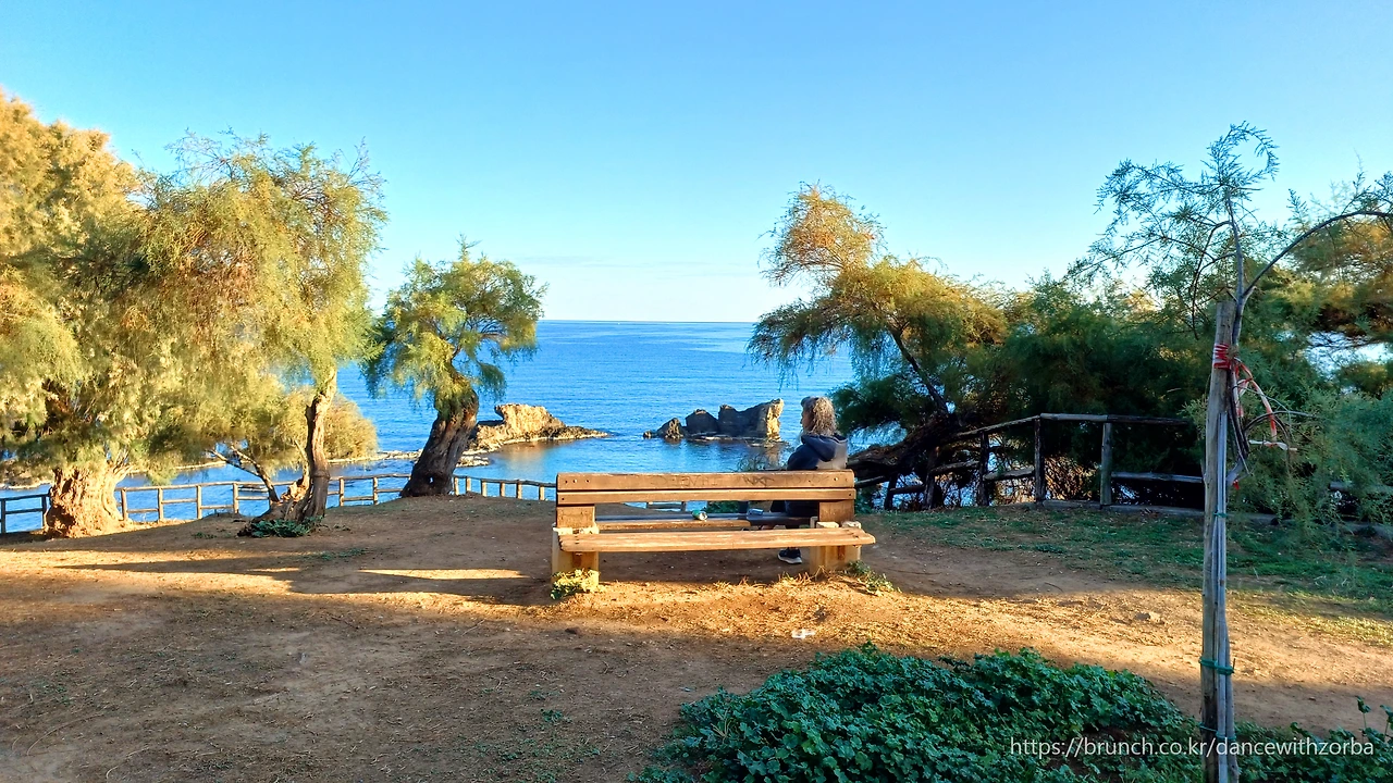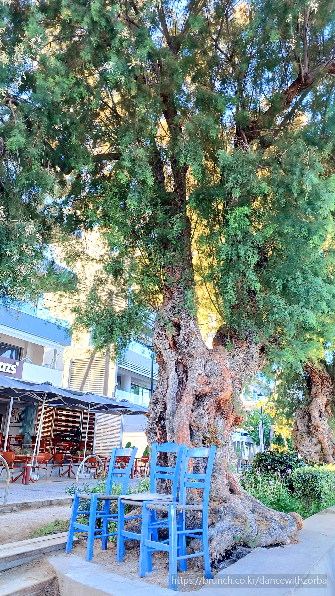우리네 팽나무나 녹나무를 떠올리게도 한다. 굵고 뒤틀린 줄기에는 바람의 방향과 계절의 반복이 그대로 남아 있다. 가지 끝에는 연한 초록빛 잎이 달려 햇빛을 잘게 부순다. 예부터 타마리스크는 그늘을 만들고, 바닷바람을 막아주는 나무로 심겨져 왔다고 한다. 항구 근처 길과 해변 산책로에 이 나무가 많은 이유도 그 때문이다. 크레타 사람들에게 타마리스크는 장식용 식재가 아니라, 생활을 오래 지탱해 온 동반자에 가깝다. 그래서인지 이 나무들은 해변의 수호자처럼 보인다. 바다와 가장 가까운 자리에서 물러서지 않고 서 있는 모습이 늠름하다. 길게 뻗은 크레타의 해안선을 따라 이어진 오래된 타마리스크들은 이 섬이 쌓아온 시간과 기억을 붙잡고 있는 뿌리처럼 느껴진다.
