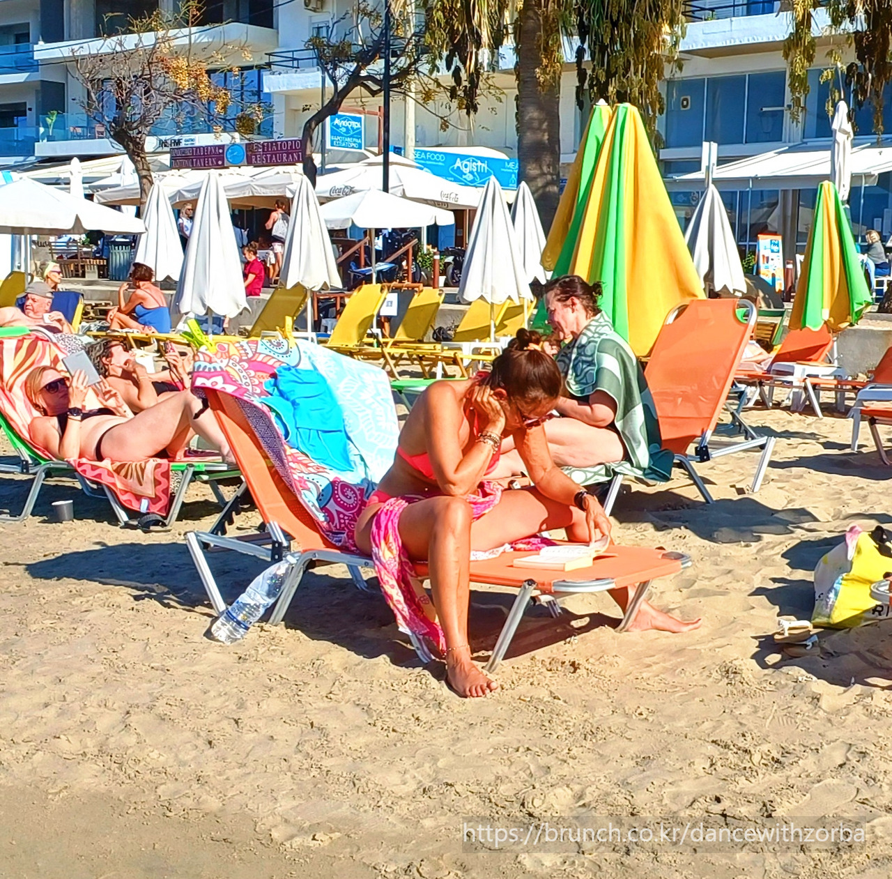 카뮈의 말을 이곳에서 실감한다. 이들에게 지중해는 인간의 복잡하고 고통스러운 삶, 그리고 존재의 부조리함마저도 중립적으로 감싸 안는 자연의 상징이다. 나도 이곳에서 아무리 노력해도 이해할 수 없는 삶의 모순과, 결국은 유한한 존재라는 사실로부터 잠시 해방된다. 사람들은 바다 앞에서 그들의 불안과 걱정을 씻어내고 오로지 지금 이 순간, 태양 아래 존재하는 육체의 기쁨을 만끽한다.