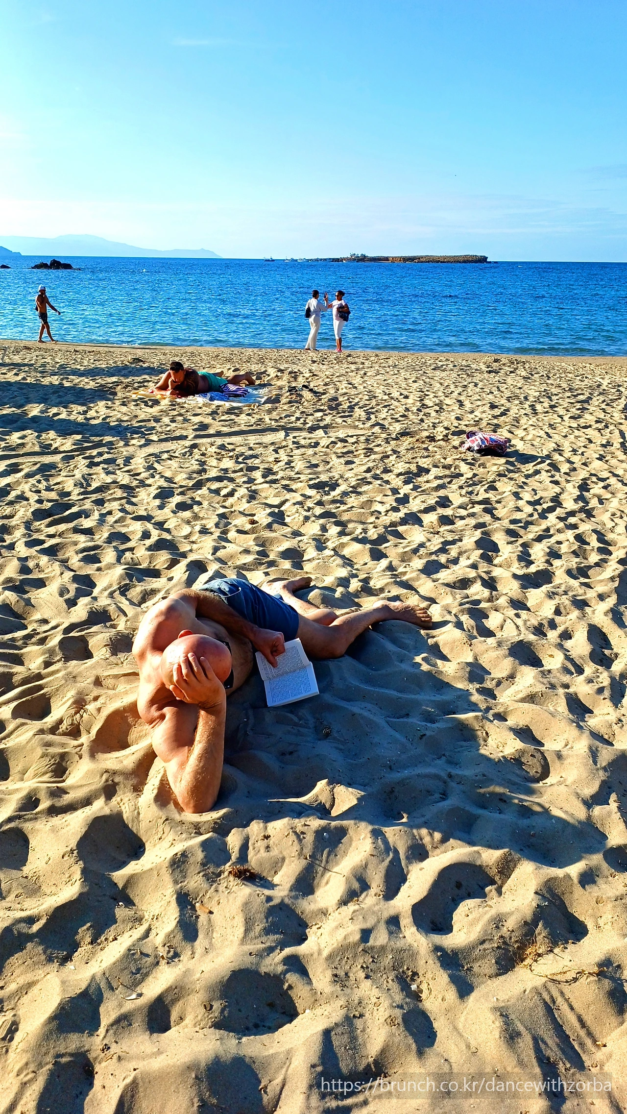 얼마나 흘렀을까. 나와 바다 사이, 모래 위에서 누군가가 춤을 추고 있다. 박자에 맞춘 춤이 아니다. 리듬을 따라가기보다는 몸이 먼저 움직이고, 음악이 뒤늦게 따라오는 춤이다. 팔은 과장되게 벌어지고, 어깨는 자유롭게 흔들린다. 얼굴에는 자신감과 웃음이 함께 어려 있다. 동작마다 여유와 호방함이 묻어난다. 조르바다.