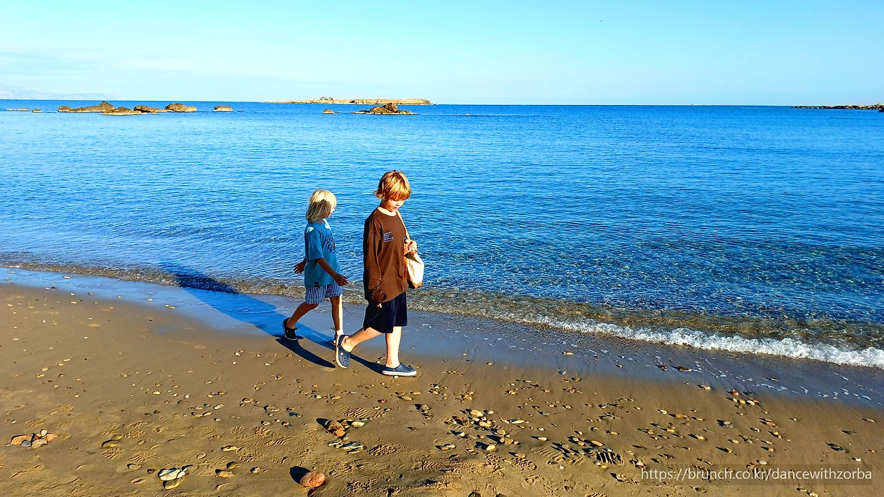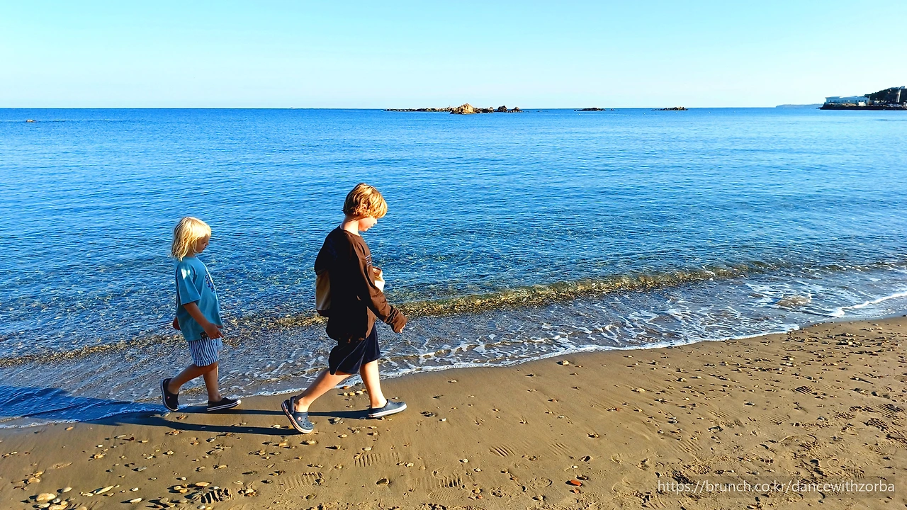 출발했던 네아초라 해변으로 돌아왔다. 러닝 앱에 표시된 거리는 11km를 조금 넘는다. 해변을 천천히 걸으며 숨을 고른다. 숙소로 이어지는 길에서 소년 하나와 소녀 하나가 내 쪽으로 걸어온다. 굳이 물어보지 않아도 남매라는 걸 알 수 있다. 아침 해변을 따라, 오빠와 여동생이 나란히 산책을 나선 모양이다. 말없이 걷는 뒷모습이 다정하다. 그 장면은 사진처럼 마음에 찍힌다.