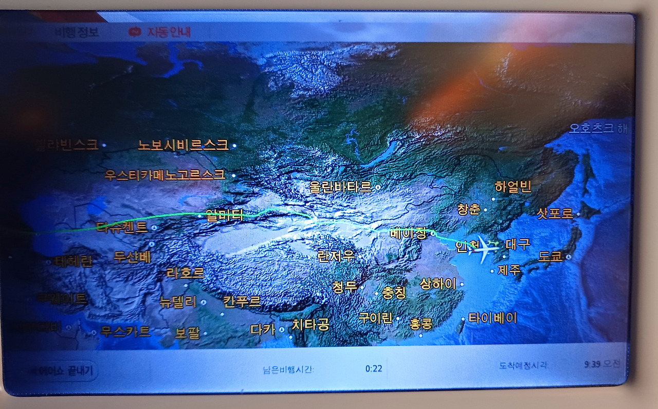 내 행운은 여행에서 이미 다 쓴 모양이다. 내 왼쪽 좌석에 덩치 큰 외국인 50대 여성이 앉는다. 내 왼손과 무릎의 상처를 의식해 팔걸이는 미리 양보한다. 불편을 감수하고 팔짱을 낀 자세로 최대한 잠을 부른다. 그런데 문제가 거기서 끝나지 않는다. 그녀는 계속 몸을 움직이며 내 쪽으로 영역을 넓힌다. 자면 괜찮아질 거라 기대했지만, 그녀는 좀처럼 잠들지 않는다. 무언가를 꺼냈다 넣었다, 열었다 닫았다를 반복한다. 두껍고 큰 스카프를 상체에 두르고, 담요까지 머리부터 뒤집어쓰고 계속 꼼지락거린다. 담요는 어느새 내 왼쪽 다리 위까지 덮여 있다. 그녀의 판도라의 상자 같은 가방에서는 끝없이 만질 물건과 바스락거리는 소리를 만들어 낸다.