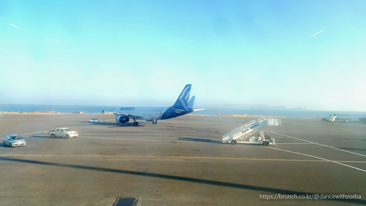 이라클리온 공항은 지방의 큰 버스터미널을 닮았다. 사람들은 북적이지만, 출입과 대기 시설은 오래되어 실제보다 더 혼란스러워 보인다. 대기실 창 너머로 우리가 탈 이지언 항공 비행기와, 이라클리온 앞바다가 함께 들어온다. 여행의 미련이 없지는 않다. 23일은 짧지 않은 시간이지만, 무언가를 제대로 경험했다고 하기에는 턱없이 부족한 시간이다. 감 정도만 잡았다고, 맛 정도만 봤다고 해야 할 것이다. 그럼에도 분명한 것은, 와보지 않았다면 느낄 수 없었을 실체감과 안목을 얻어간다는 사실이다. 에게해 바다 빛깔과 파도. 4천 년 동안 크레타 사람들이 바라보았고, 무수한 사건과 이야기가 출렁이는, 카잔차키스가 평생 그리워했던 바로 그 바다를 직접 보았다. 그것만으로도 이 여행은 이미 우리에게 충분히 베풀었다.