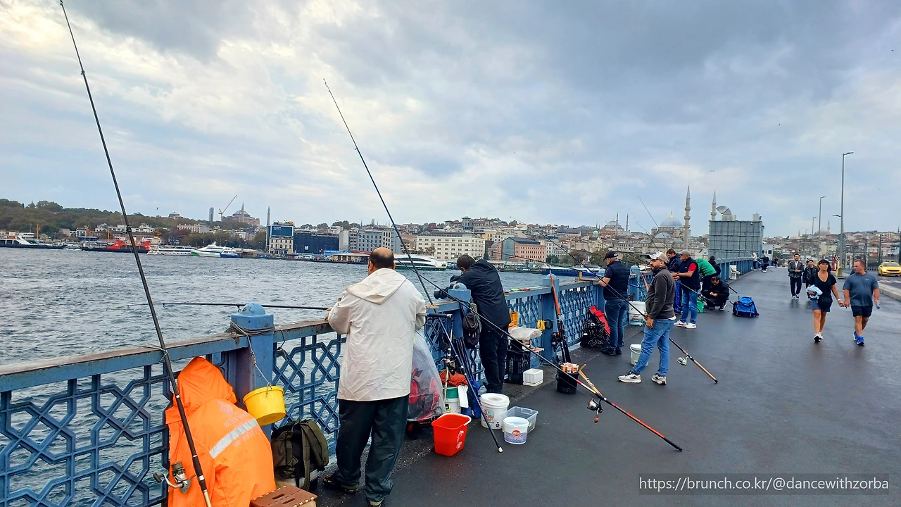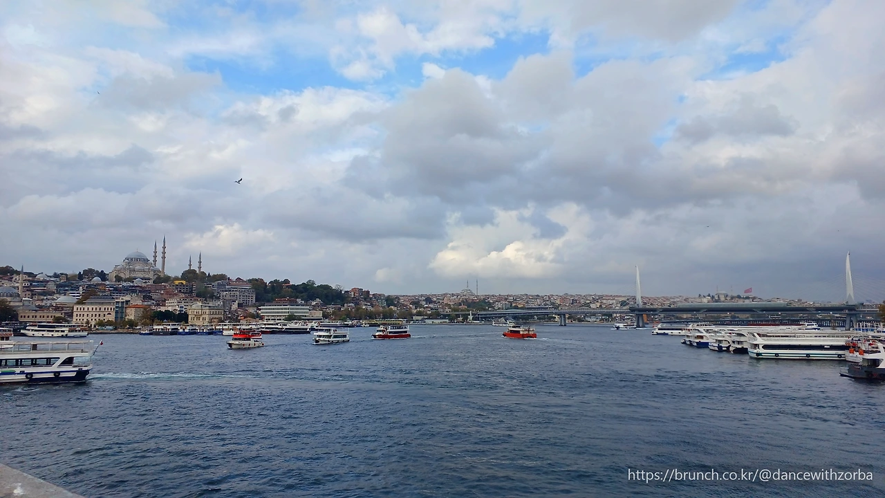 갈라타 다리가 시야에 들어올 즈음, 빗방울이 다시 흩뿌리기 시작한다. 금각만(Golden horn bay) 입구를 가로지르는 이 다리는 한강보다 훨씬 좁지만, 역사와 사연은 훨씬 깊다. 금각만은 고대 그리스 시대부터 존재한 천혜의 항만이었다. 비잔티움이 이곳에 자리 잡은 것도, 오스만 제국이 천년의 제국을 완성한 것도 모두 이 만의 품 때문이었다. 전쟁의 배들이 드나들었고, 상인들의 언어가 부딪혔으며, 종교와 문명이 서로의 어깨를 스치며 통과해 간 곳. 한때 유럽과 아시아를 잇는 세계의 관문이었던 이 좁은 물길에는, 수천 년의 왕국과 제국이 흘려보낸 숨결이 지금도 잔잔히 떠 있다.