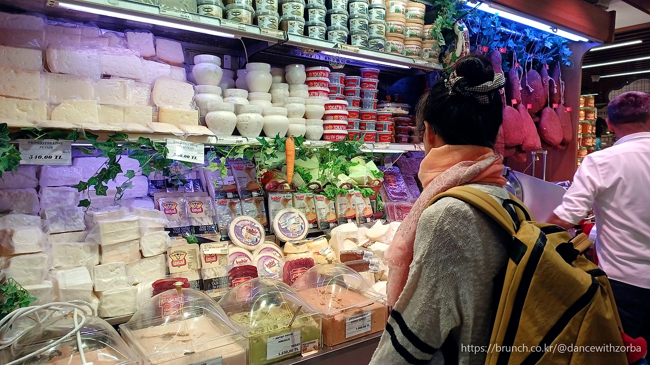 이집션 바자르를 나설 때, J의 손에는 두부를 닮은 치즈 한 덩이와 길게 찢은 모차렐라 한 봉지가 들려 있다.
