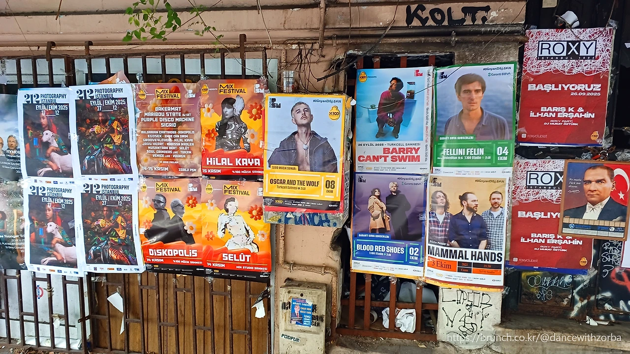 페리가 카디쾨이 부두에 닿았을 때, 도시의 공기가 달라졌다. 베식타쉬 선장착 주변의 차분한 분위기보다 한결 가볍고, 사람들의 표정에는 활기가 보인다. 부두 앞거리엔 젊은이들이 삼삼오오 모여 앉아 이야기를 나누고 있다. 거리의 벽엔 낙서와 그라피티가 많이 보였고, 오래된 건물 아래에는 카페와 상점이 늘어서 있다. 해가 조금씩 기울어가는 오후, 도시는 자유로움으로 충만하다.