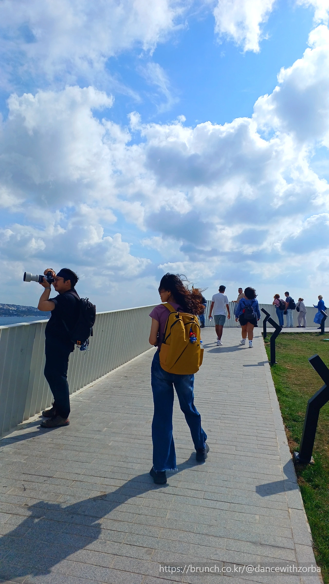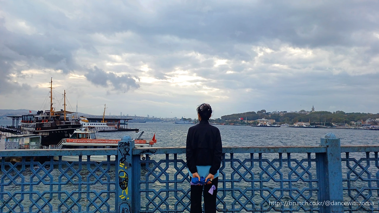 바람이 불어 J의 머릿결과 옷을 보스포루스 하구 쪽으로 끌어당긴다. 순간 '신화에 나오는 이오가 이런 모습이었을까' 상상해 본다. 머리카락이 바람에 나부끼고, 치마는 제우스의 시선을 매달고 펄럭였겠지. 바람은 옅은 짠내와 나무 냄새, 그리고 바다의 미세한 미열을 함께 실어왔다. 멀리서 페리의 뱃고동이 울리고, 그 소리가 해협을 따라 길게 이어진다. 이 도시는 돌로 쌓인 것이 아니라, 바람으로 이어진 도시다.