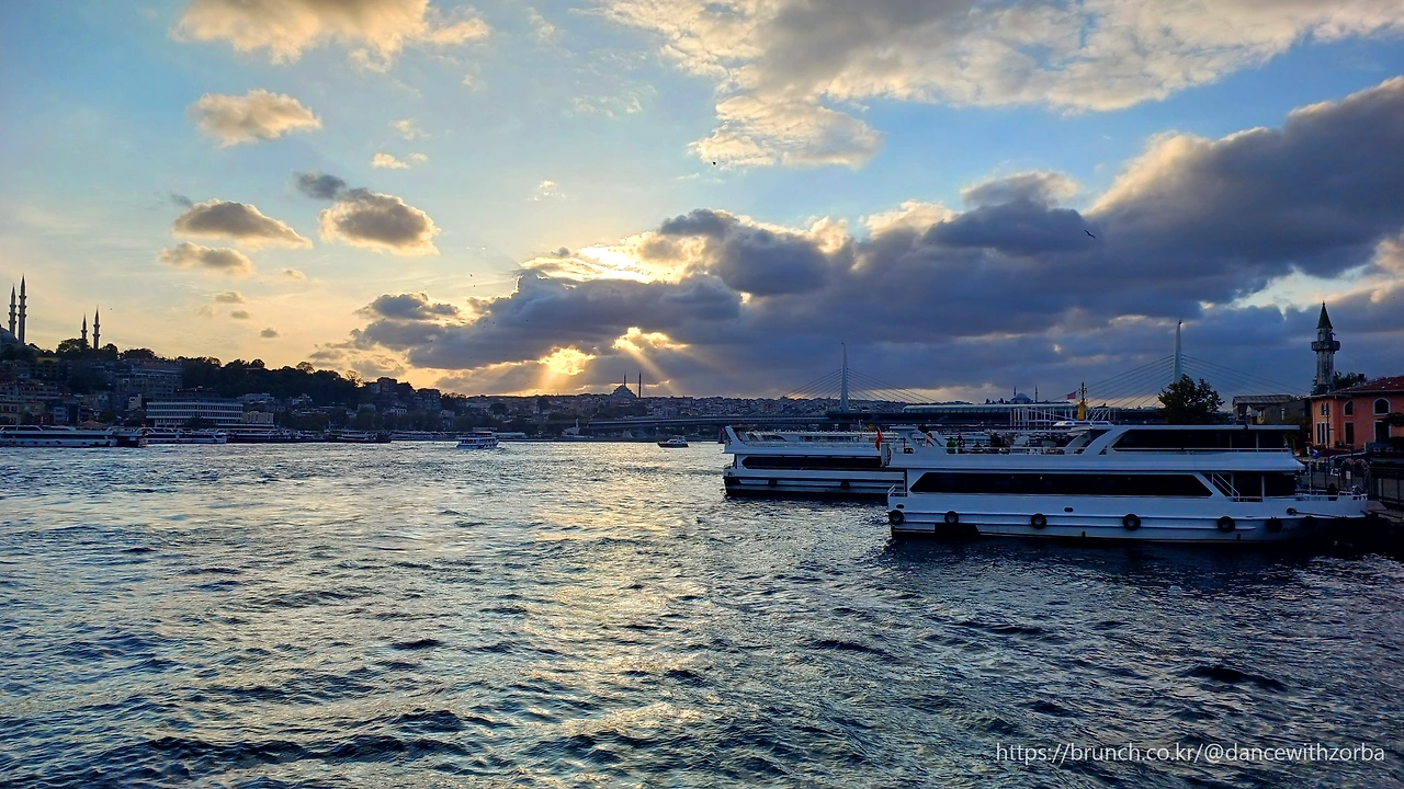 해가 서쪽으로 기울며, 바다는 금빛으로 물들기 시작한다. 멀리 유럽 쪽의 건물들이 빛에 잠기고, 페리 한 척이 천천히 항로를 따라 움직인다. 카디쾨이의 오후는 그렇게, 조용하고 따뜻하게 흘러가고 있다. 보스포루스 해안의 물결을 따라 걷다 보면 생각이 단순해지고, 마음은 잔잔해진다.