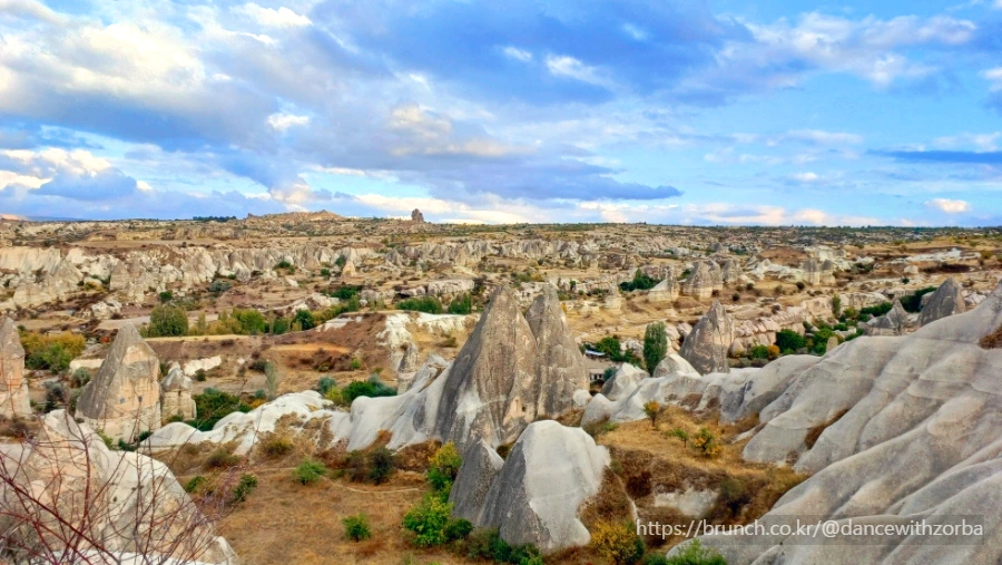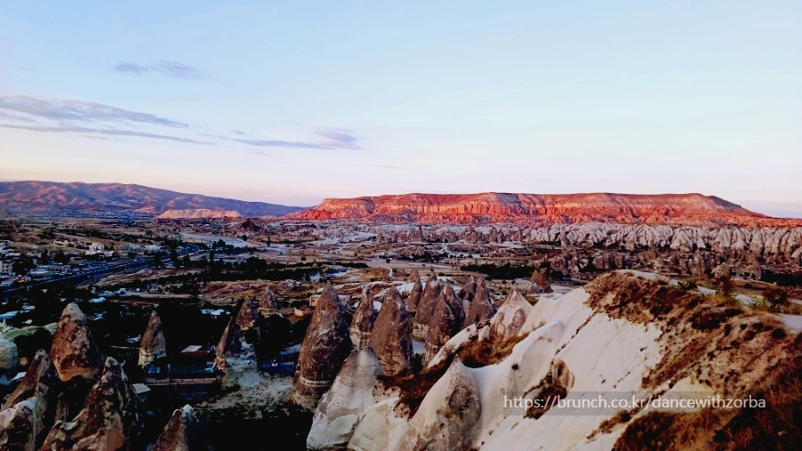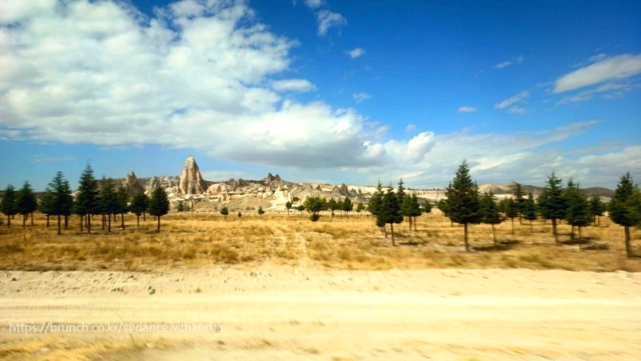 공항 앞에는 택시를 대신하는 돌무쉬(소형 밴)가 줄지어 손님을 기다리고 있다. 괴레메까지 인당 300리라. 차에는 이미 대여섯 명의 우리 같은 이방인 여행객이 타고 있다. 차창 밖으로 스치는 풍경은 낯설다. 한쪽은 몽골의 초원 같고, 또 다른 쪽은 동유럽 시골의 언덕을 닮았다. 카파도키아, 이름만으로도 여행자들의 마음이 먼저 날아드는 곳.