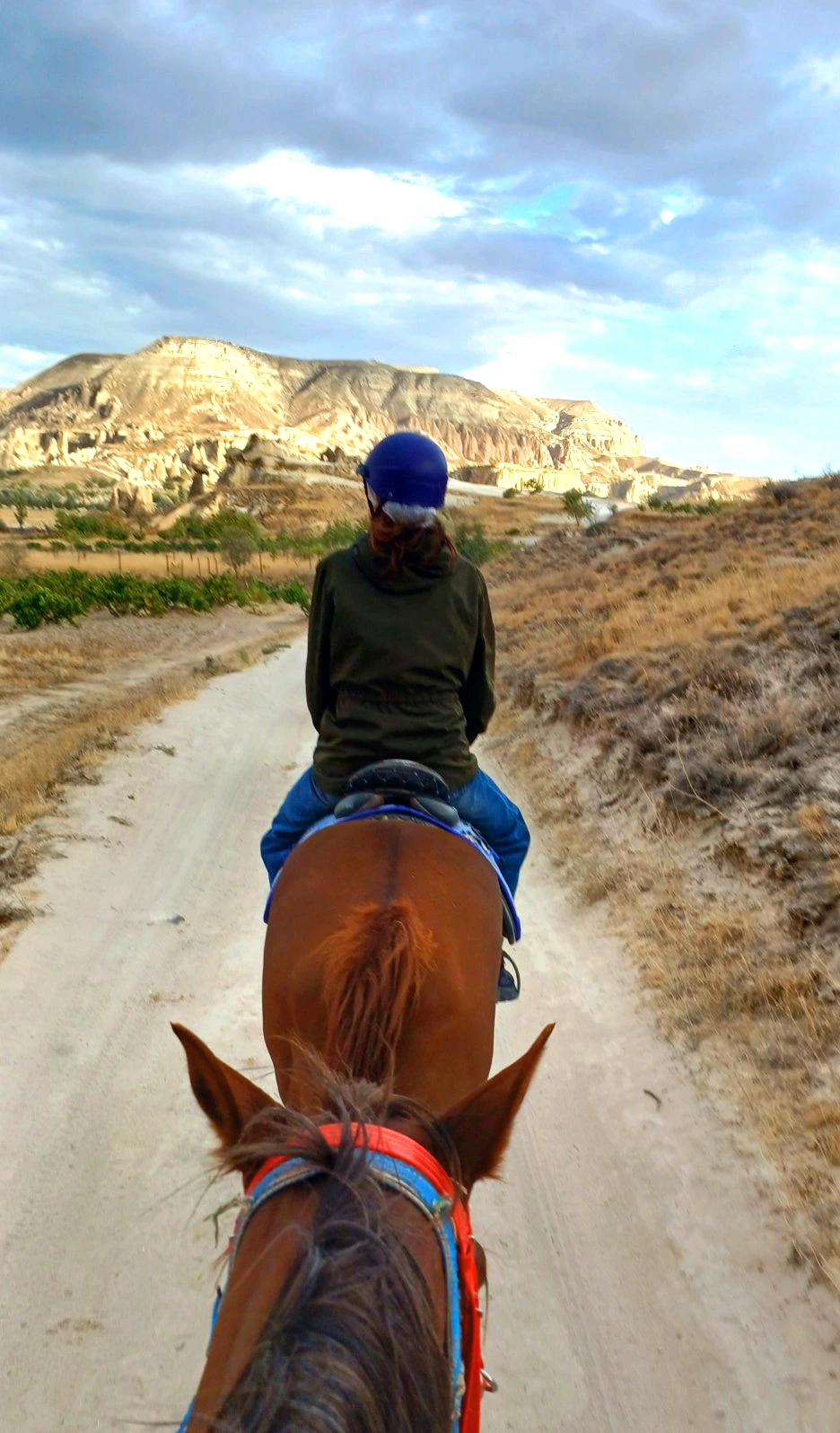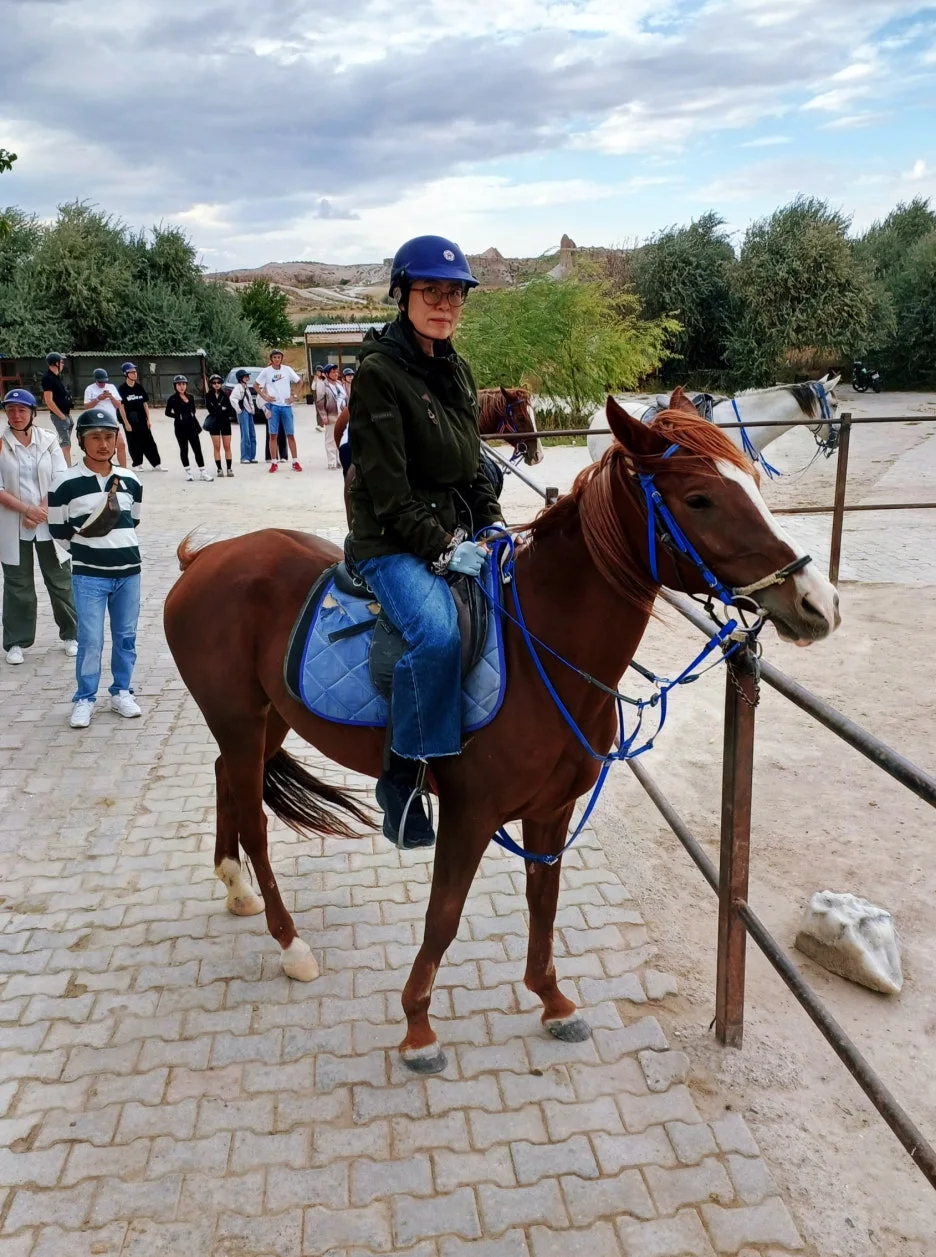 대로변의 여러 여행사 중 하나를 골라 들어간다. 문 앞에는 각종 투어 상품의 가격표가 걸려 있다. 검은색 히잡을 가볍게 걸친 30대 초반의 터키 여성이 우리를 맞는다. '밖에 사진을 보니 석양을 배경으로 말을 타는 투어가 있는 것 같은데, 가능하냐'고 묻자 그녀는 고개를 끄덕이며 “Ok, Sunset Horse Riding Tour”라고 답한다. 인당 45유로, 약 두 시간 코스라고 한다. 단순히 체험용 승마가 아니라 괴레메 외곽의 붉은 바위 계곡을 천천히 탐험하는 일정이라는 설명이 마음에 든다. 4시 30분에 숙소 앞으로 픽업을 가겠다는 말로 예약을 확정한다. 모든 일정이 완벽할 수는 없지만, 어쩌면 이런 즉흥의 조정이야말로 여행의 진짜 얼굴인지도 모른다. 오늘은 말을 타고 석양을 보고, 내일은 다시 새로운 하늘을 기다리자.