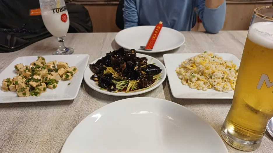 2층으로 올라가자 중학생쯤 되어 보이는 남자아이가 우리를 맞았다. 장난기 어린 웃음이 얼굴에 배어 있다. 상대방도 덩달아 미소 짓게 만드는 귀여움이다. 메뉴판을 보며 닭 요리 두 가지 중 어떤 게 낫냐고 묻자, 그는 아래쪽 메뉴를 자신 있게 추천한다. 우리는 목이버섯볶음, 닭 볶음, 마파두부, 계란 볶음밥, 맥주, 그리고 아이란을 주문했다. 주문을 마치자마자 부엌 쪽에서 기름이 튀는 소리와 함께 고추기름 냄새가 퍼진다. 낯익은 냄새가 입안 가득 침을 불러온다.