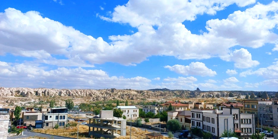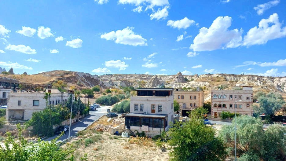 호텔은 마음에 들었다. 돌을 깎아 만든 전통 벽면은 투박하지만 온기가 있고, 터키식 카펫 무늬의 커튼과 침대보는 짙은 색감으로 방을 감싼다. 창문을 열면 멀리 흰색에 가까운 작은 봉우리들이 솟아있다. 루프탑에 올라가 보니 그 풍경은 한 폭의 거대한 지도처럼 펼쳐진다. 오래된 지층 위에 세워진 도시, 바람이 깎은 바위의 계곡들, 그리고 저 멀리 흘러가는 빛의 강. 나는 정말로 다른 별에 왔구나.