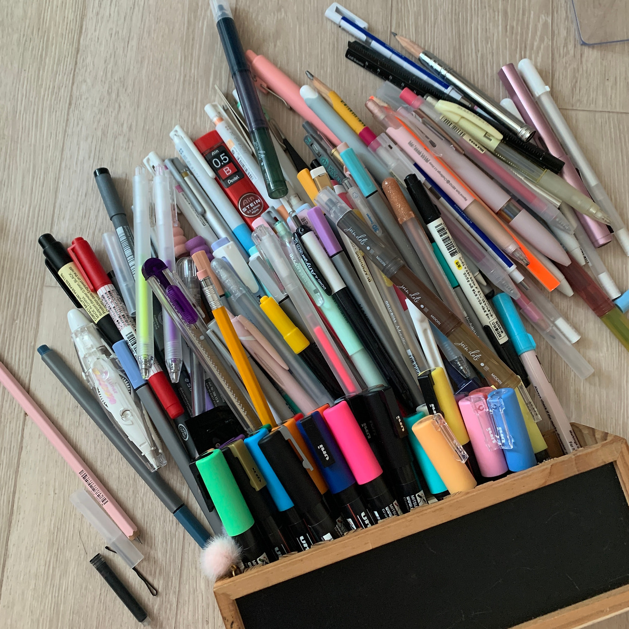 너무 많은 양에 기겁을 하고 볼펜의 수를 세어보았다. 무려 103개! 그중 라커펜도 있었지만 이렇게 많은 펜을 사고 정작 나는 제일 좋아하는 볼펜 하나만 쓰고 있었다.