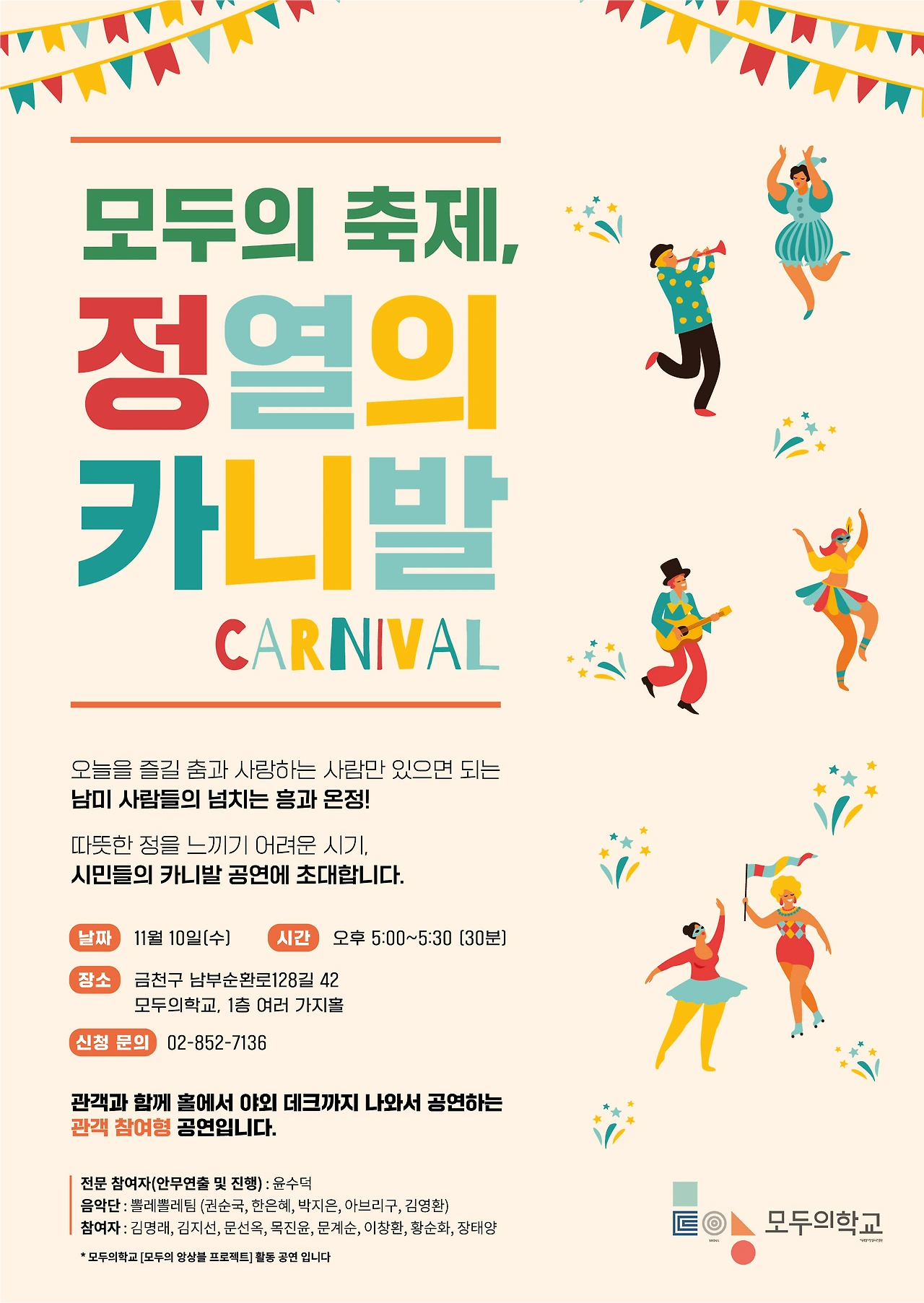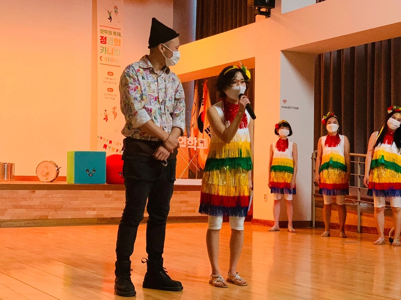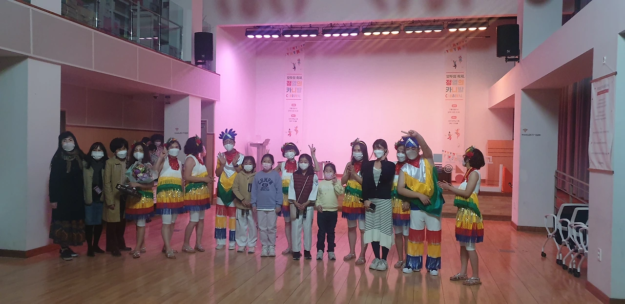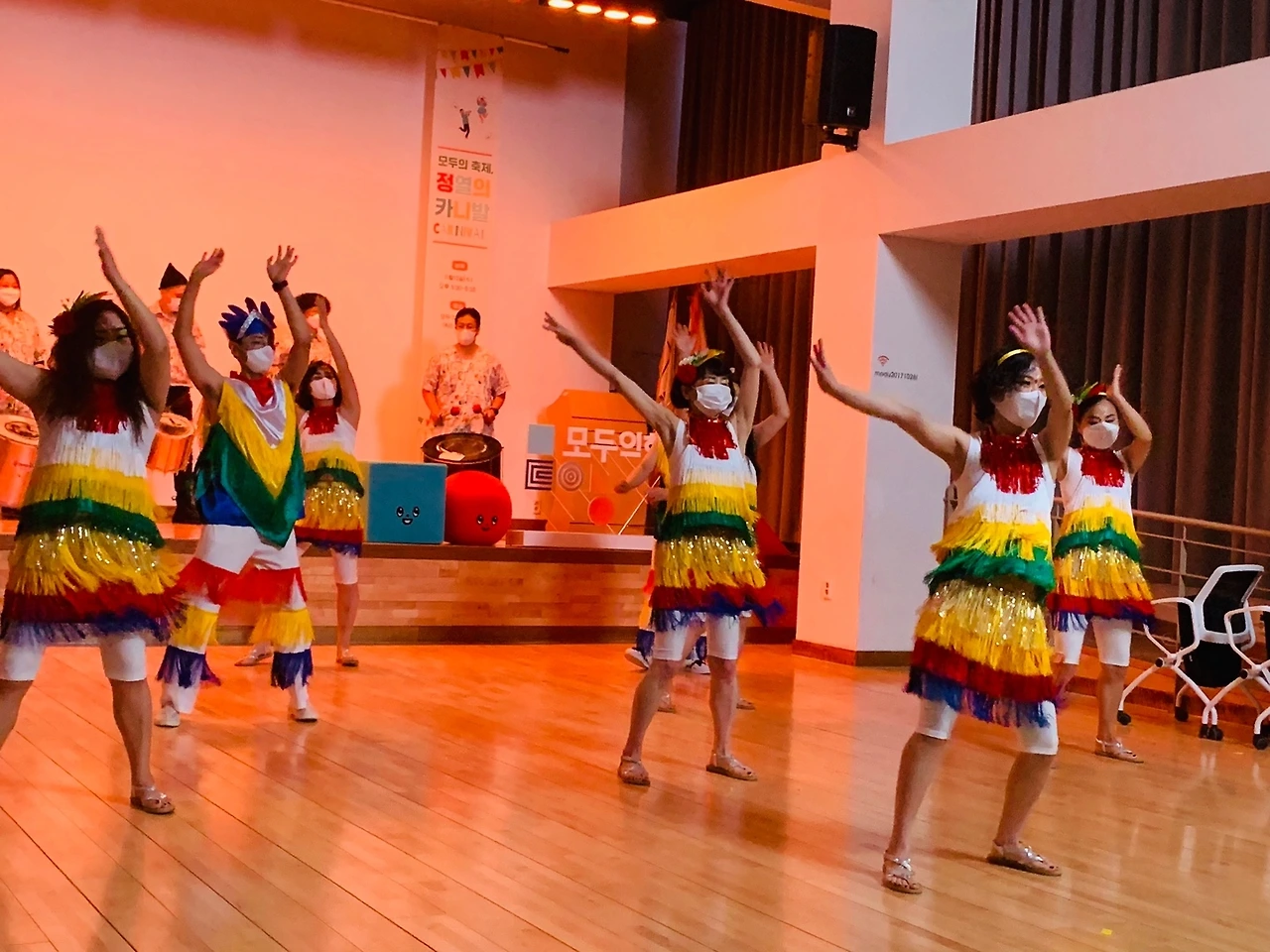 <모두의 학교> 카니발 남미댄스 공연을 위해서 참여자분들에게 춤을 가르쳤고, 공연의 전체적 준비(분장,의상,음악,안무연출 등)를 했고, 마지막 공연날 앞에서 진행하고 메인 댄서로 춤을 췄기 때문에