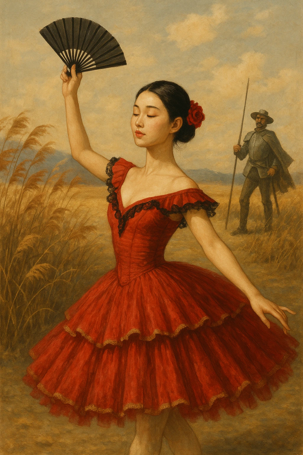하루는 꿈속에서 부채를 들고 다시 춤을 추는 자신의 모습이 보였는데, 젊고 아름다웠으며 빛이 났다. 키트리 역할을 한 젊은 시절의 아름다웠던 발레리나의 모습은 아직 끝나지 않은 듯 보였다. 수연은 빨간 장미로 활짝 핀 듯, 해방된 모습이었다. 무용의 꿈을 키웠던 그녀가 꿈을 접으려고 할 때 가능성이 있다고 지지해 주셨던 스승님이 떠올랐다. 잃어버렸다고 생각한 춤을, 무용을 할 수 없다고 생각했던 그녀에게 다시 한번 기회를 주고 응원을 해준 분이었다. 돈키호테처럼 자유롭게 떠나고 때로는 자신만의 길을 걷고자 했던 그녀에게 그 꿈은 아련하고 슬펐다. 날기만 할 것 같던 새가 갑자기 추락한 것처럼, 결혼생활은 그녀에게 벼랑 끝이었다.