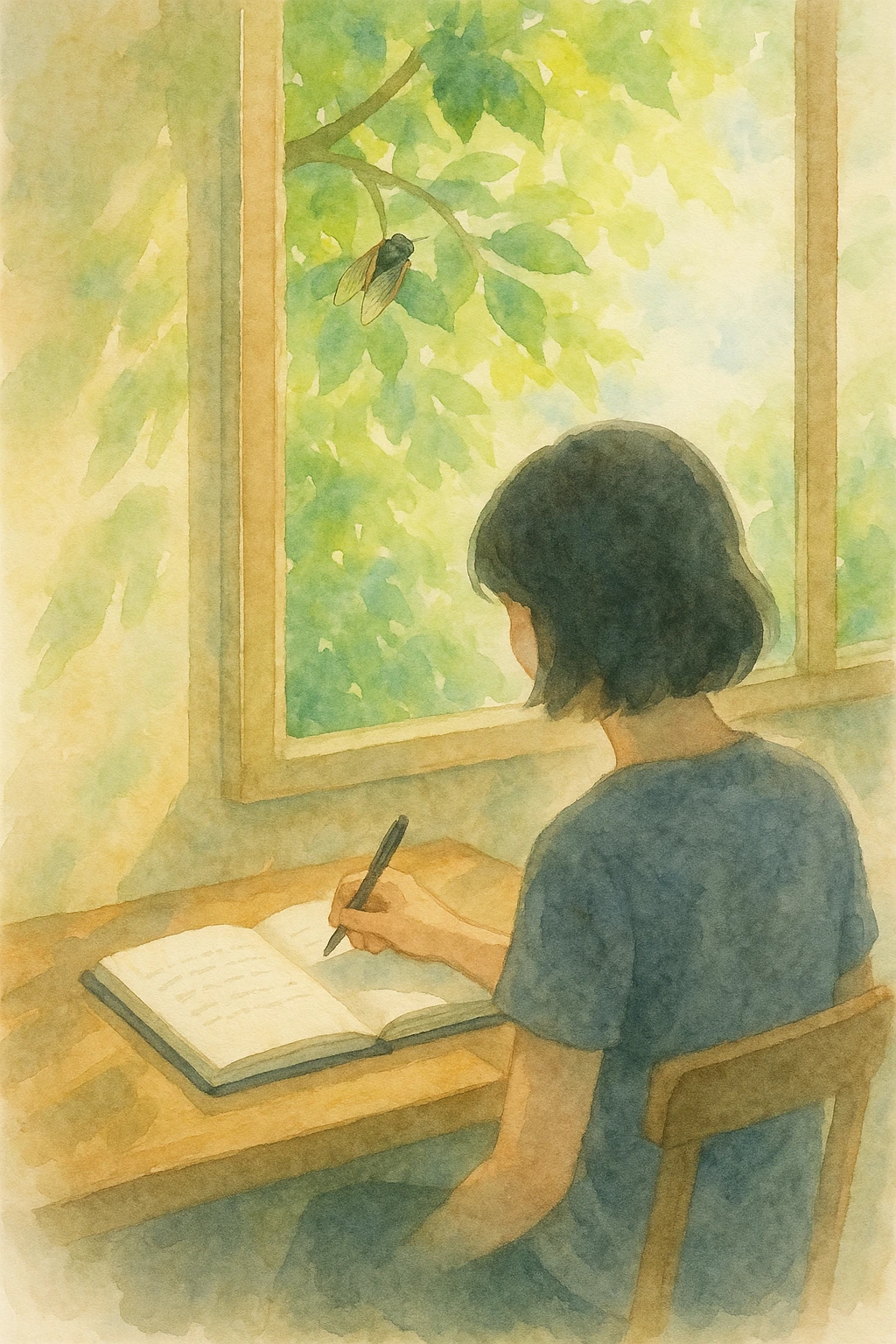 매미 소리가 시끄럽다며 씩 돌아보며 웃는 얼굴로 나를 본다.