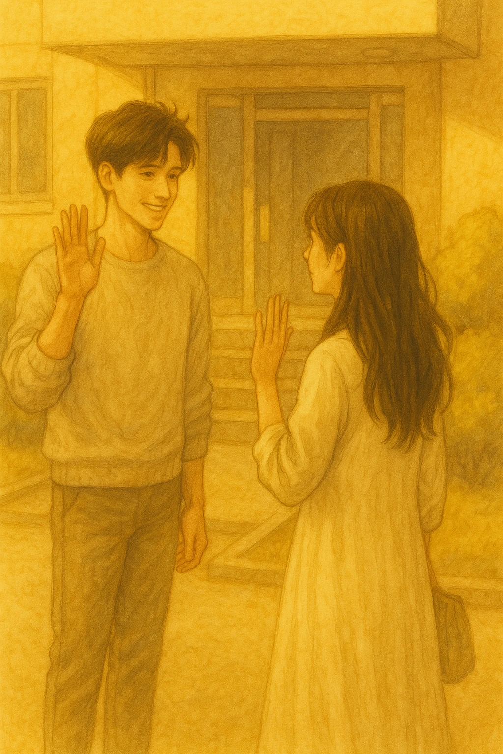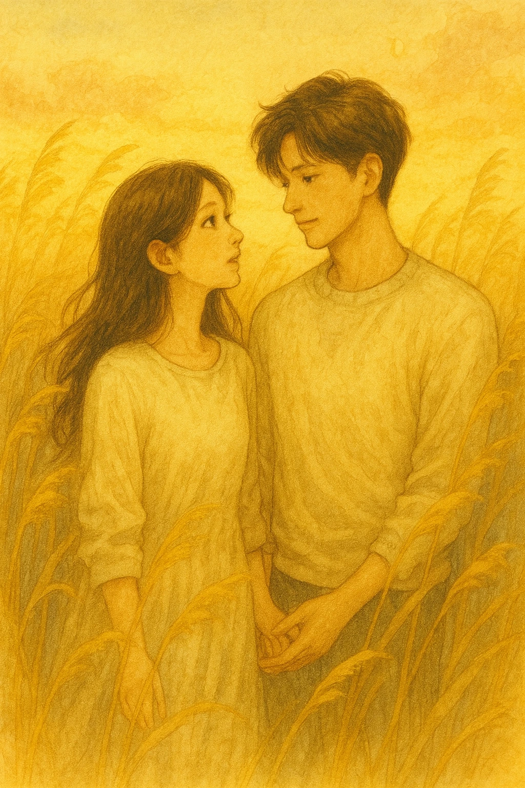 윤찬과 수연은 황금빛으로 물든 갈대밭 산책로를 걸었다.